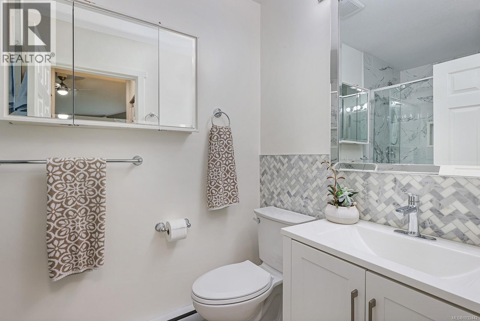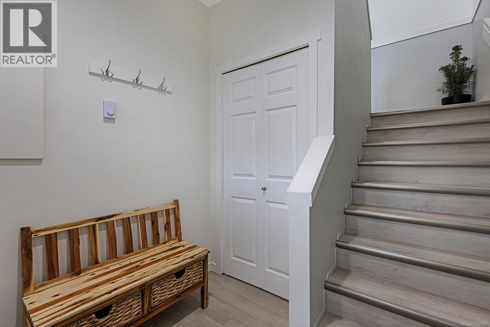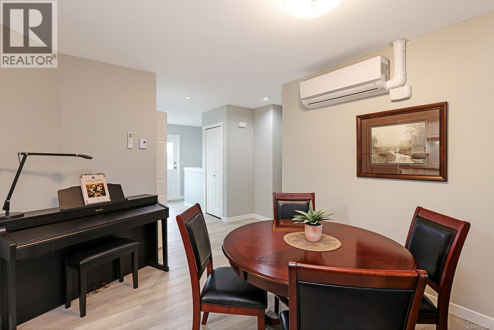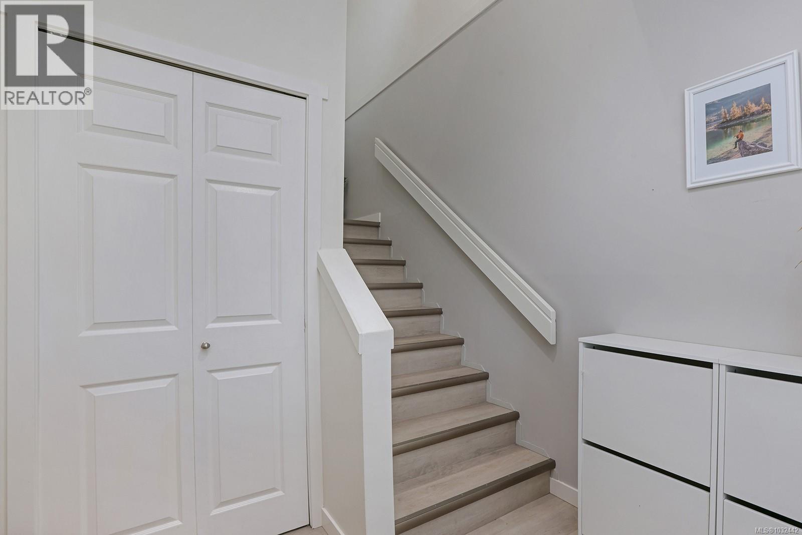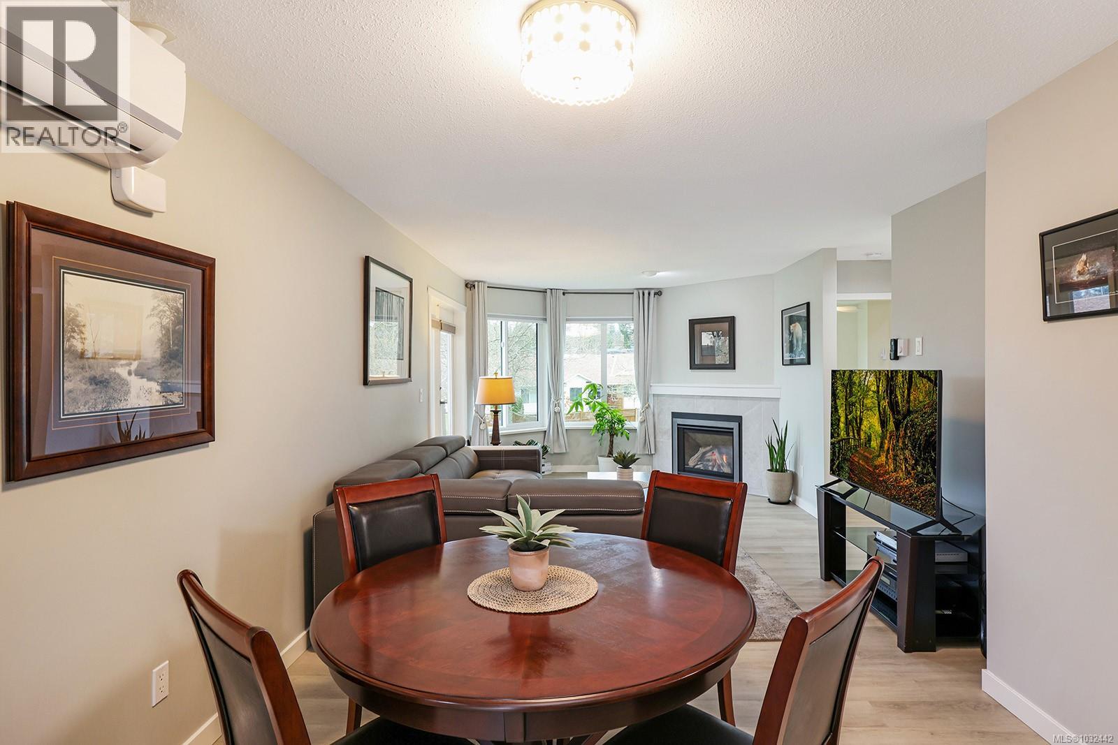Beautifully updated and well-maintained townhome with a convenient location and fabulous views! Two decks, one with SW exposure and one with NE mountain views add to the spacious floorplan of 1,359 sf, 2 BD/ 2 BA. This lovely 2nd floor townhome boasts a stunning new natural gas high-end fireplace with tile surround, hearth and mantle by Cameron, professionally refinished kitchen cabinets, new tall toilets, a split pump for efficient heating and air conditioning, vinyl plank flooring, triple pane windows, and freshly painted walls. Abundant windows create a light filled happy home including a spacious primary bedroom with vaulted ceilings and beautiful 3 pce ensuite with tiled shower and gorgeous herringbone tiled feature walls. The kitchen offers lots of counter workspace, s/s appliances, white backsplash with a serene coastal, handmade look, and a cozy breakfast nook with a view. A covered carport, lots of storage, close to transit, parks, shops, NIC college and the Hospital. (id:37104)