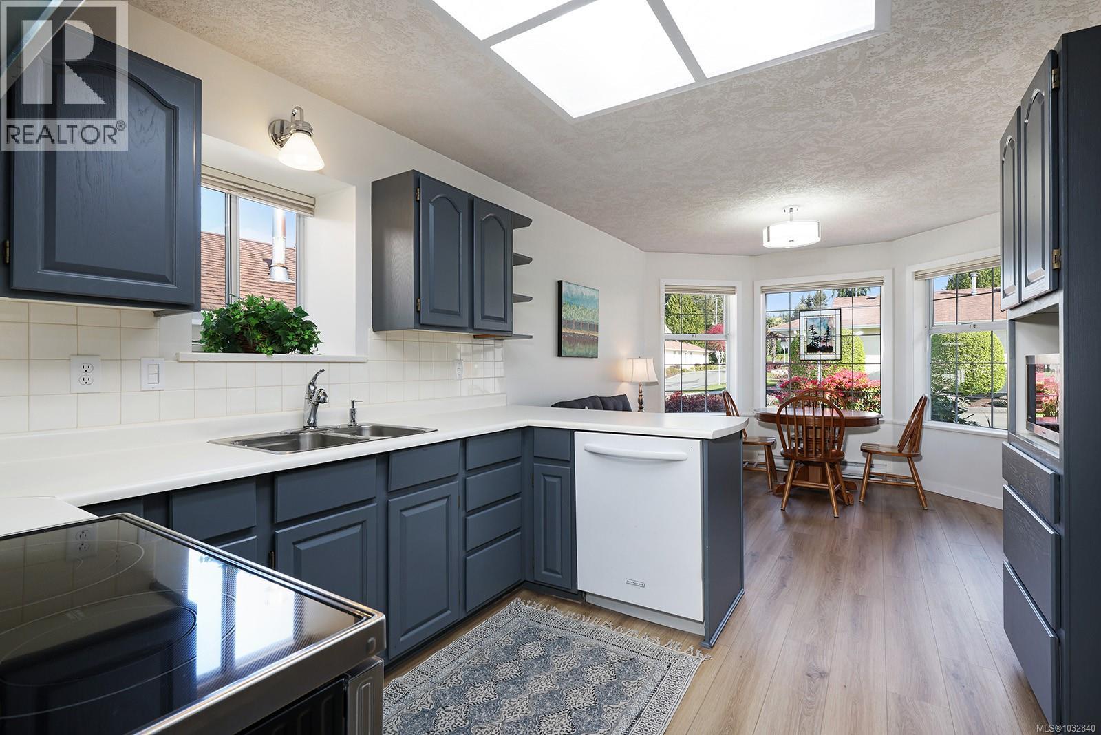 Spinnaker West, a desirable patio home development in the heart of Comox! This immaculate one level residence offers 2 BD/ 2 BA, 1,342 sf, beautifully updated creating a chic modern look. Enjoy sunny afternoons and summer BBQs on the private covered patio w/ southern exposure. Inside the Living room boasts a new gas fireplace 2024, split pump for efficient heating & A/C, new vinyl plank flooring & carpets. A well-designed kitchen offers s/s fridge and stove – 2025, freshly painted cabinets & lovely breakfast nook bathed in morning light. The primary suite w/ ensuite & walk-in closet offers a serene retreat overlooking the back gardens. The guest room/office is conveniently located by the main bath, (new vanity, quartz c/t) & front entry. New paint throughout, 5 windows replaced, Poly B removed, washer & dryer 2024, H/W tank 2024, toilets 2023. Close to everything you need in this quaint seaside town, shops, restaurants, the Marina, Filberg Park, and Brooklyn Creek nature trails. (id:37104)