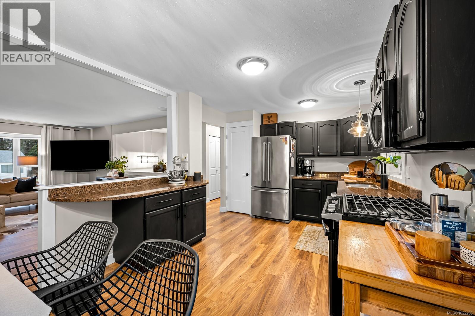 Tucked into one of Courtenay’s most sought-after locations, on a no thru road, near the Puntledge river, swim holes, trails, schools, and walking distance to downtown Courtenay, this beautifully updated family home offers the rare blend of lifestyle, flexibility, and peace of mind. Natural light pours into this home, while the sunny southwest-facing backyard invites you into outdoor living. Entertain on the covered deck with built in integrated home audio and natural gas hookups for both BBQ and firepit—designed for connection year-round. Smart lighting and in-home audio would give you control of your home from your smart phone. A separate fully self contained studio suite, with its own off street parking and own hydro meter adds income potential or space for extended family. Thoughtful recent new upgrades: natural gas furnace, hot water tank, windows, exterior doors, fencing, city water main, and more—so you can simply move in and enjoy. Complete with RV parking. (id:37104)