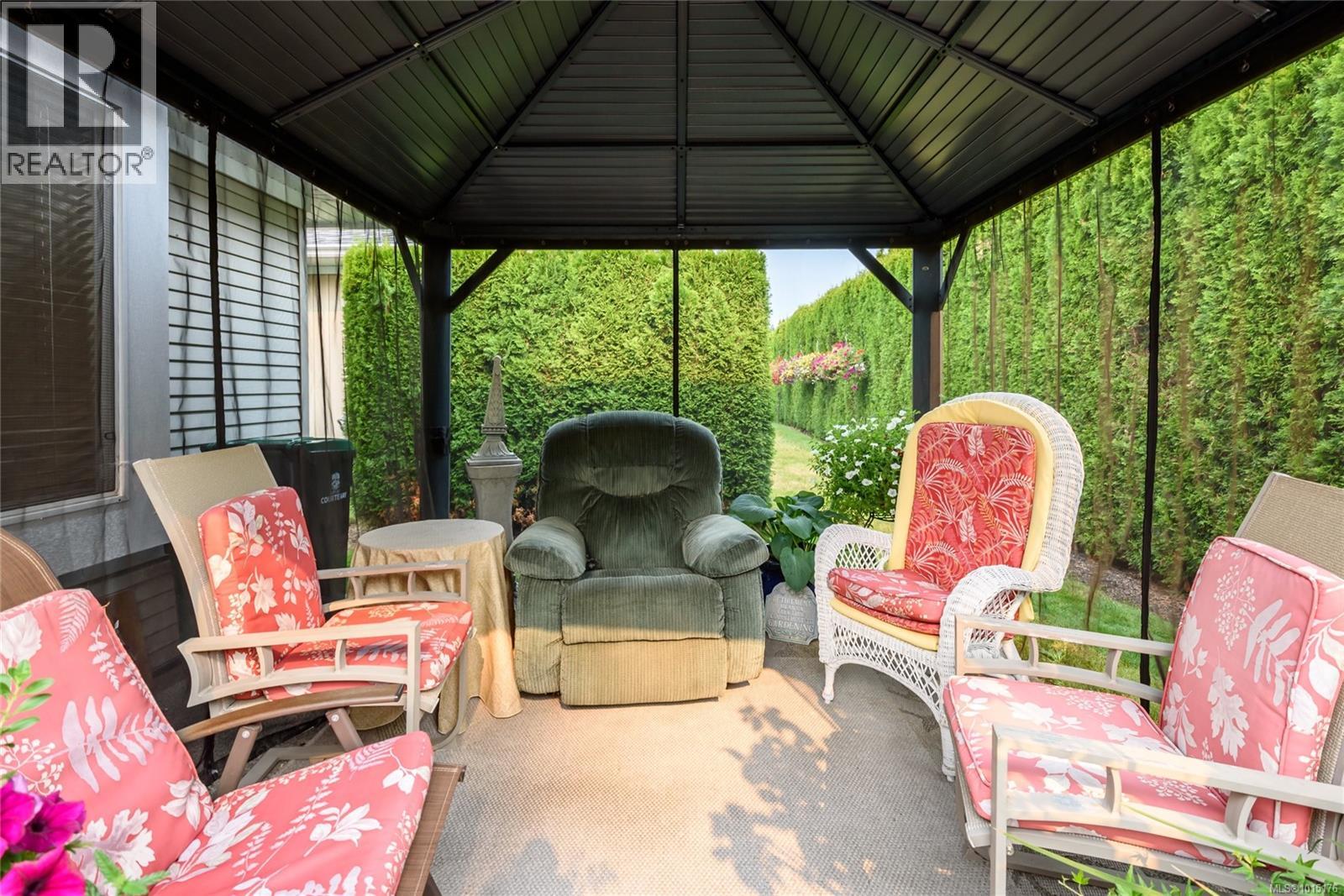 Check out this 2bdrm/2bth 1371 sq/ft open concept patio home in popular Heather Glen gated community. Perfectly situated at the end of cul-de-sac with no road noise. The spacious kitchen has an island & skylight for natural light. The living room has a cozy gas fireplace. Central vac system included. Newer appliances & laminate flooring in recent years. Bonus 5 piece ensuite with double sinks. Separate laundry room with storage capacity. Bonus family room off the kitchen. A radiant heat floor system is the primary heat source. The large primary bedroom has a 5pc ensuite & ample closet space. The second bedroom is perfect for guests or the office. Enjoy the private, enlarged double patio space for relaxing & entertaining with a gas hook up for the BBQ. The single car garage has room for storage with shelving & a wall of cabinets & features a double driveway for two cars. Close to all amenities including the Crown Isle Golf Resort, shopping, hospital, Costco, Home Depot & Aquatic Centre. (id:37104)