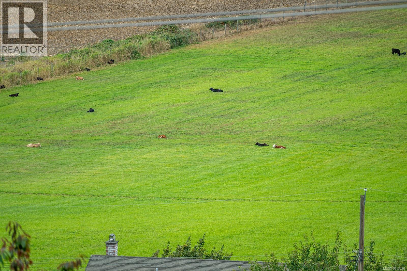 Welcome to your private hillside retreat offering some of the most captivating views in the Comox Valley. Perched high above the valley floor, this 2,859 sq ft 5-bedroom, 3-bathroom home captures sweeping vistas of lush farmland, the Coast Mountains, and quintessential Comox Valley Glacier views. From sunrise to sunset, the ever-changing scenery feels like living in a painting. The main level is designed to showcase the panorama, with expansive windows across the living and dining rooms that flood the space with natural light. A striking stone fireplace adds warmth and character to the living room, while the spacious dining area flows seamlessly into the kitchen. The kitchen, with plenty of counter space and direct deck access, is perfectly placed for family meals or entertaining. Step outside to the expansive deck and take in the valley and mountain backdrop—the perfect spot for morning coffee or summer gatherings. The main floor also features three bedrooms, including the primary suite with its own ensuite, and two additional bedrooms near a full bath. Downstairs, the walkout lower level offers a bright family room with garden access, two more bedrooms, a bathroom, and plenty of storage. This flexible space is ideal for guests, extended family, or a home office setup. Outdoors, there is an inground pool and hot tub providing a relaxing oasis, while terraced gardens and winding paths invite exploration. A Japanese-inspired tea house, mature trees, and vibrant plantings create a private sanctuary, perfect for quiet reflection. With multiple sheds, a greenhouse, and a double garage, there is room for hobbies, storage, and projects. Set on a large, landscaped lot just minutes from downtown Courtenay and Comox, this home offers a rare combination of privacy, space, and iconic views. Properties with such character and setting seldom come to market—don’t miss your chance to make it your own. Listed by The Courtney & Anglin Real Estate Group - The Name Friends Recommend! (id:37104)