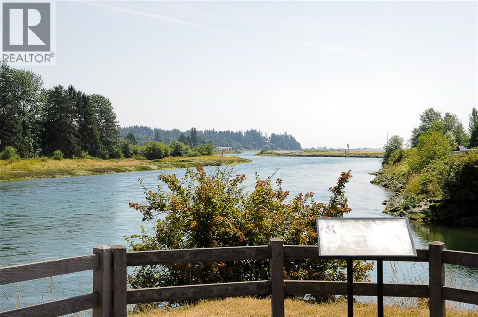 This well-maintained, 2 bed/2bath, corner-unit condo in The Tides is centrally located with mountain views & glimpses of the river. Stroll out your front door & in a few short steps you’re on the scenic Courtenay Riverwalk that winds along the river & estuary, as well as the oceanside Airpark Trail. This bright unit features open plan living with large windows & a spacious covered deck off the dining area. The efficient kitchen offers maple Shaker cabinetry & ample counter space & the living room has a cosy electric fireplace. The primary bedroom includes a walk-through closet leading to a private ensuite. Features: in-suite laundry with stacking washer/dryer, newer hot water tank (2023), building elevator & 1 secure underground parking space & storage unit included. Fantastic opportunity for comfortable, low-maintenance living in a sought-after location close to downtown amenities. (id:37104)