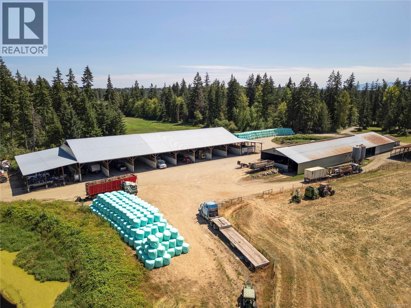 Discover the rare opportunity to own a truly versatile 245-acre family-run farm, perfect for agriculture, recreational expansion, or even a future campground. This farm offers a well-maintained custom-built, 3-level home featuring 6 bedrooms and 5 bathrooms, ideal for large families or multi-generational living. The property is enhanced by an 1811 sqft three-bay storage garage with over-height doors, perfectly suited for RV and boat storage, alongside a spacious 612 sqft workshop. Above the workshop is a private 2-bedroom suite with a large covered deck, offering serene views and the perfect setup for rental or extended family use. Adding to the accommodation options are two mobile homes, each with two bedrooms. One of these mobiles benefits from its own separate entrance off the Island Highway, making it convenient for guests or additional income potential. The farm's layout is thoughtfully organized with dedicated equipment storage, featuring concrete divisions, a tractor shed, and a barn. There’s also an existing milk house and milk parlour, supporting dairy operations. With lush hayfields and ample room for cattle, the property is fully equipped for continued agricultural use, and an equipment list is available upon request. As a significant bonus, there’s potential for a campground area with its own separate entrance, providing the perfect opportunity to diversify income stream. Share sale option available. This property is brimming with opportunity, whether you’re looking to continue farming, expand into agritourism, or build a recreational getaway. Don’t miss your chance to own this exceptional farm with endless potential! For more information please contact Ronni Lister at 250-702-7252 or ronnilister.com. (id:37104)