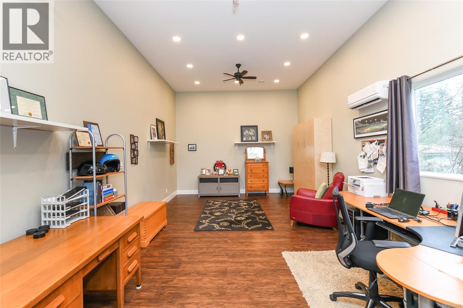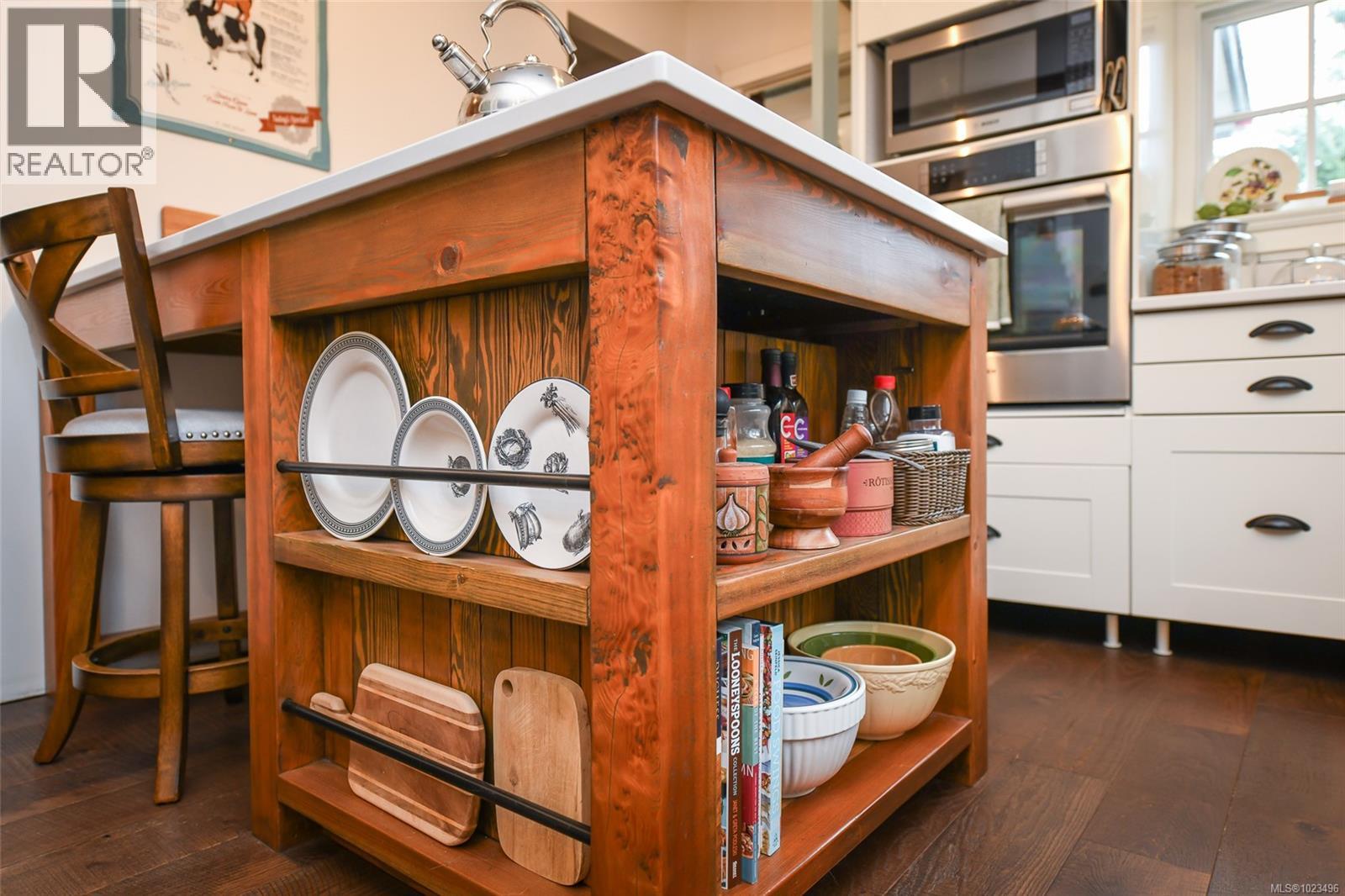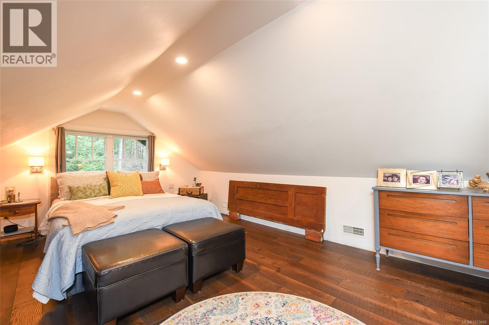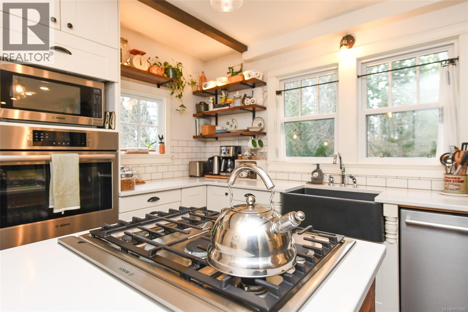 Rare opportunity to own a fantastic 4-acre property that includes a charming farmhouse plus large detached garage/studio space, in the highly desirable Comox Peninsula. The main home was professionally & thoughtfully renovated in 2017 with permits. The main level features character-filled living spaces anchored by rich wood flooring & cozy propane fireplace plus 2 bedrooms. The thoughtfully designed kitchen offers a custom island with gas (propane) cooktop, apron sink, quartz countertops, Bosch stainless appliances & a walk-in pantry. Upstairs, the loft bedroom creates a private retreat complete with a soaker tub & retractable wardrobe. Extensive upgrades include spray-foam insulation, geothermal heat pump, new windows, and two separate 200-amp electrical services (home & shop), ensuring efficiency & flexibility for future use. The detached 3-bay shop boasts 14’ ceilings, a 2 piece bath & over-height overhead doors, ideal for trades, storage, hobbies, or recreational vehicles. One bay is fully insulated & drywalled with its own mini-split heat pump; offering guest, studio or workspace potential. Zoning allows for two full-size homes, presenting an outstanding opportunity for multi-generational living, future development or investment. A truly special property combining acreage, walkability, premium upgrades & long-term potential; rarely available in this coveted Comox Peninsula location. This home is just a short walk to town, parks & beaches! (id:37104)