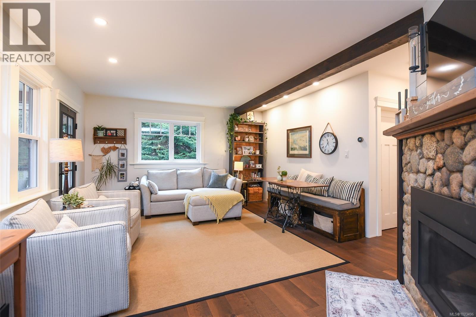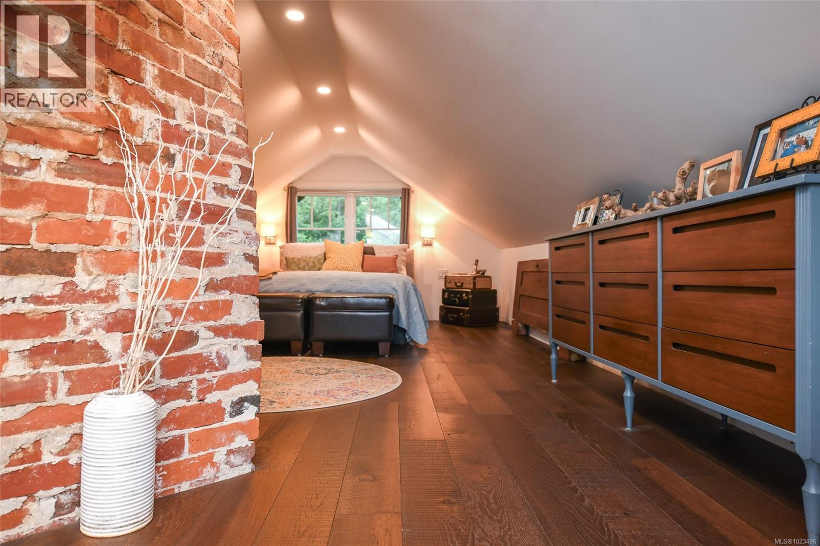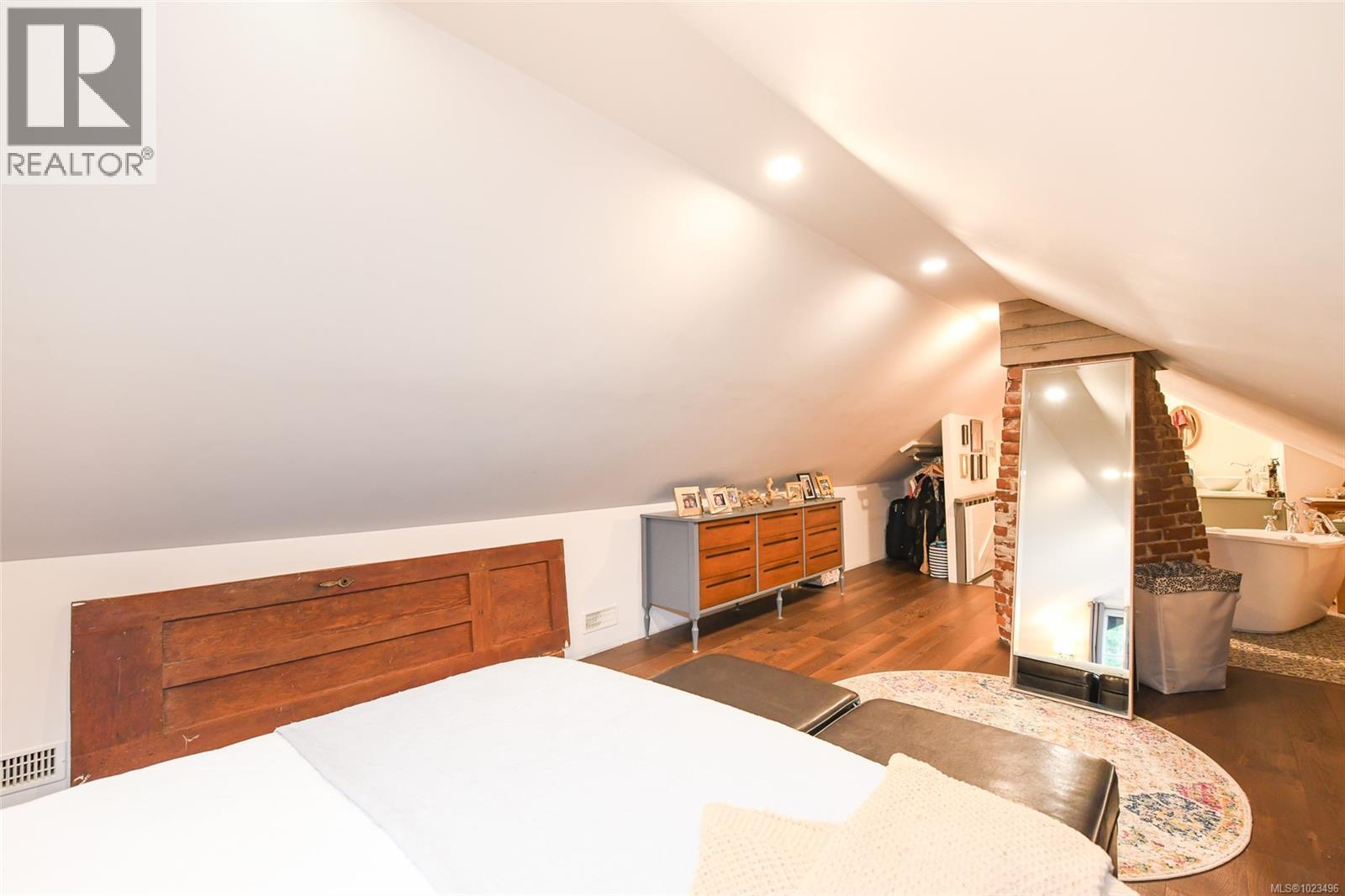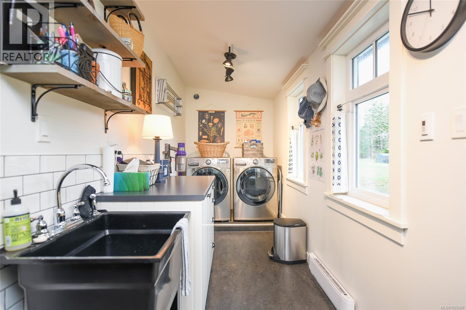 Rare opportunity to own a fantastic 4-acre property that includes a charming farmhouse plus large detached garage/studio space, in the highly desirable Comox Peninsula. The main home was professionally & thoughtfully renovated in 2017 with permits. The main level features character-filled living spaces anchored by rich wood flooring & cozy propane fireplace plus 2 bedrooms. The thoughtfully designed kitchen offers a custom island with gas (propane) cooktop, apron sink, quartz countertops, Bosch stainless appliances & a walk-in pantry. Upstairs, the loft bedroom creates a private retreat complete with a soaker tub & retractable wardrobe. Extensive upgrades include spray-foam insulation, geothermal heat pump, new windows, and two separate 200-amp electrical services (home & shop), ensuring efficiency & flexibility for future use. The detached 3-bay shop boasts 14’ ceilings, a 2 piece bath & over-height overhead doors, ideal for trades, storage, hobbies, or recreational vehicles. One bay is fully insulated & drywalled with its own mini-split heat pump; offering guest, studio or workspace potential. Zoning allows for two full-size homes, presenting an outstanding opportunity for multi-generational living, future development or investment. A truly special property combining acreage, walkability, premium upgrades & long-term potential; rarely available in this coveted Comox Peninsula location. This home is just a short walk to town, parks & beaches! (id:37104)
