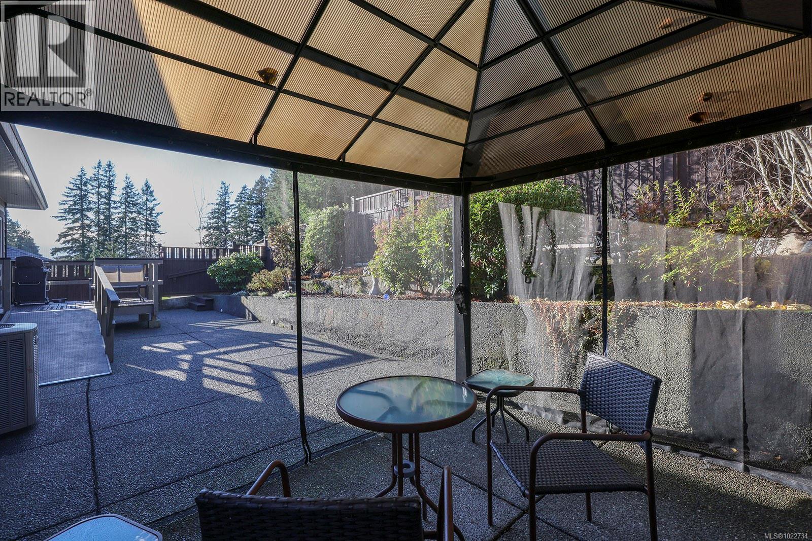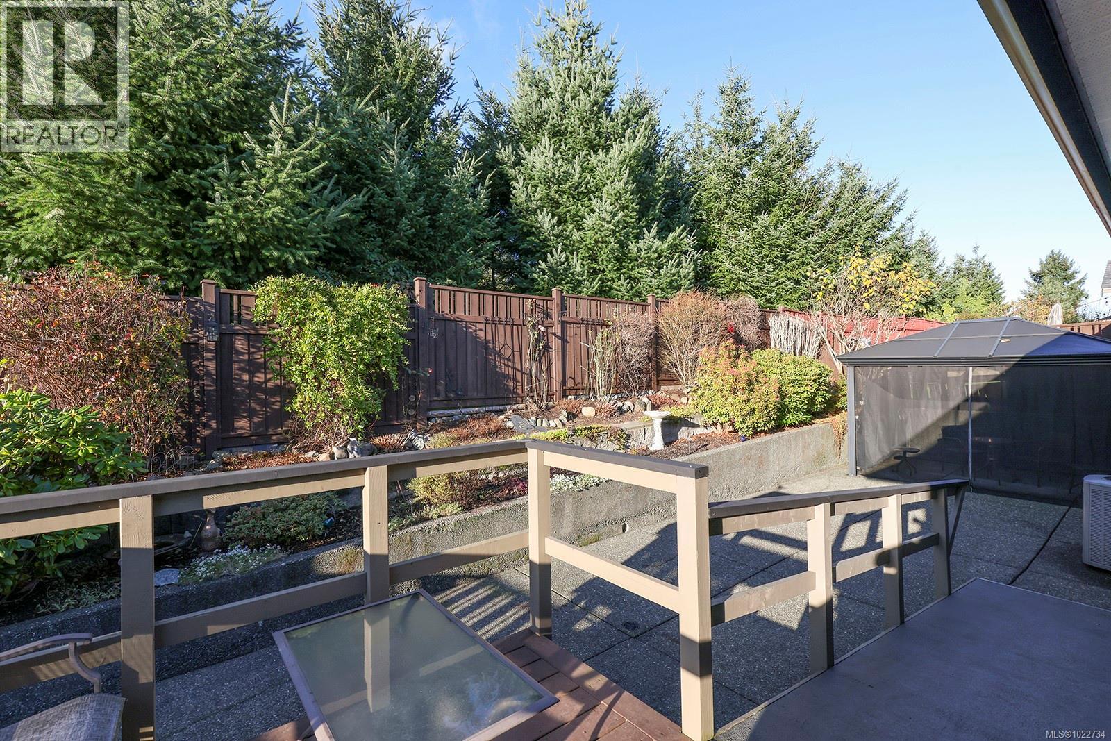 Exceptional Rancher in Lancaster Heights, a spacious layout, level lot and a charming exterior boasting wood shingle gables, Hardie Plank and stacked stone siding. Designed with comfort in mind, this open concept offers 1,454 sf, 3 BD/ 2 BA with luxurious 9’-10’ ceilings. The guest rooms are conveniently located in the south corner, creating separation and privacy for the primary bedroom and 5 pce ensuite in the north corner. The Great room offers a wonderful gathering space with streaming sunlight and a cozy gas fireplace. The beautifully designed kitchen offers lots of counter space & cabinets, a walk-in pantry and island with raised bar and seating. Easy access to the back deck w/ accessible ramp leading to the gazebo, ideal for outdoor summer dining. The low maintenance yard is fenced w/ a gate for access to a walking path behind, & a stand of trees for privacy. Irrigation, H/W on demand, Heat Pump for A/C, wired for Hot Tub, BBQ hook up. Close to shopping, woodland trails & Comox. (id:37104)