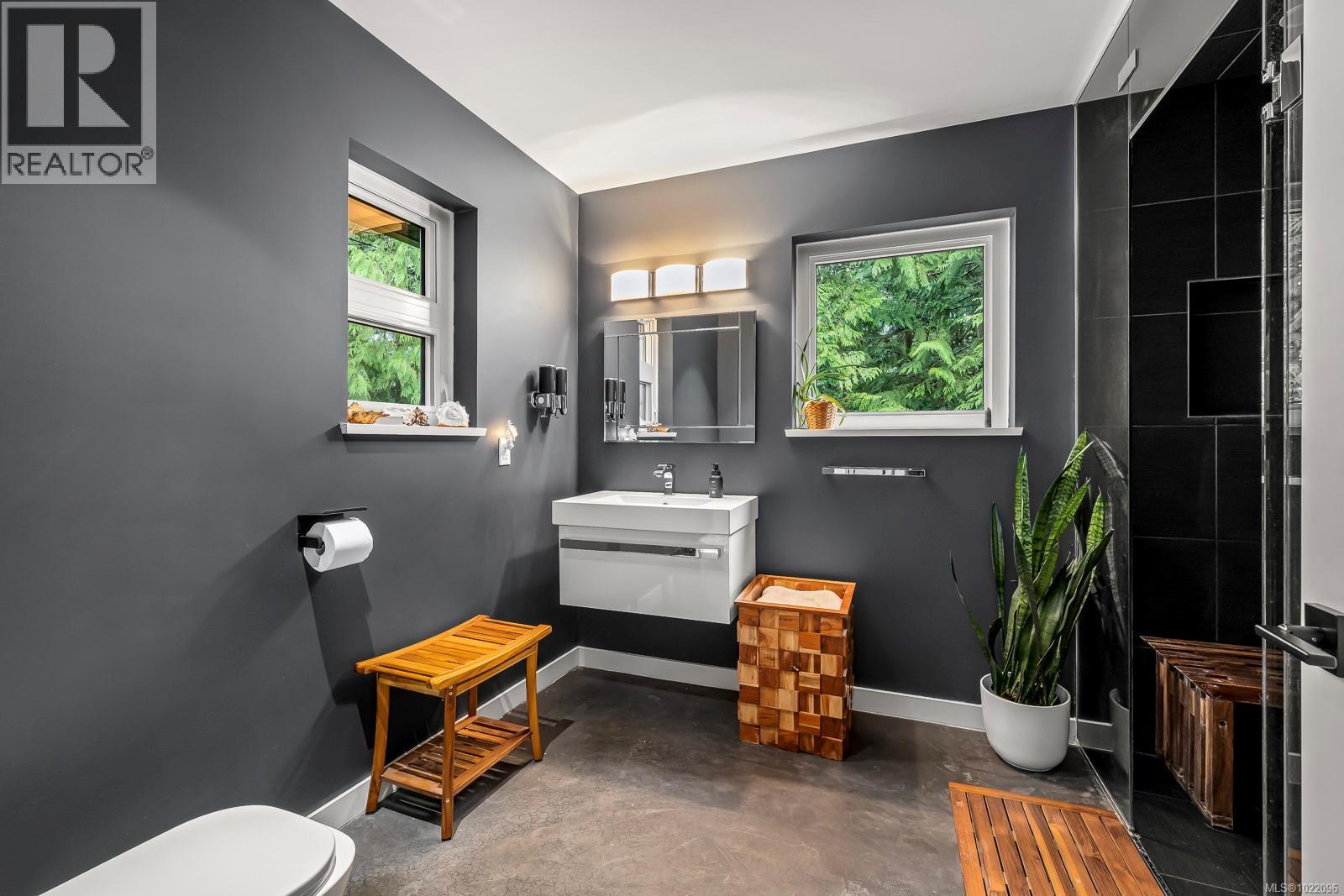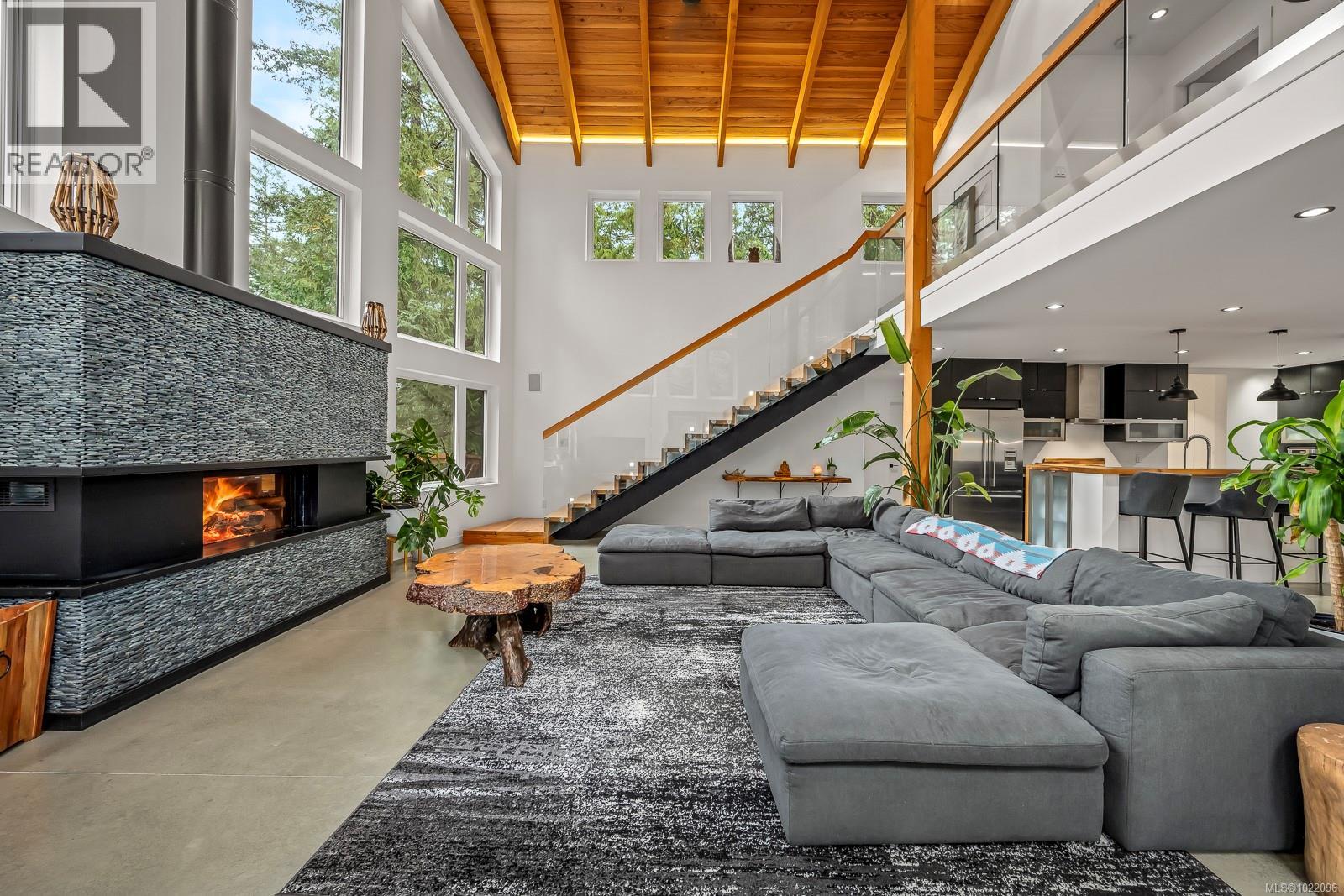 Escape to your own secluded Executive retreat. Relax in the 62 jet 6-person hot tub on a 1247 sqft wraparound deck surrounded by pristine forest. 25 foot ceilings w/a wall of windows exude elegance but are grounded by a large custom wood burning fireplace. You'll be impressed by the attention to detail including the tranquil pond flowing into a seasonal stream, economical in floor hot water heating, fully connected backup power & so much more. This custom West Coast contemporary Home offers exceptional craftsmanship with flavours of Japan. The natural elements of wood, rock & water flow to create a home to soothe the soul. From the sweet scent of Cedar in the custom Barrel sauna to the revitalizing outdoor shower to the four piece ensuite & Steam shower, you'll feel pampered every day! Property is zoned for 2 dwellings so bring the whole gang! Located 25 minutes to the ferry into Campbell River that leaves every half an hour. Very unique home must be seen to be truly appreciated! (id:37104)