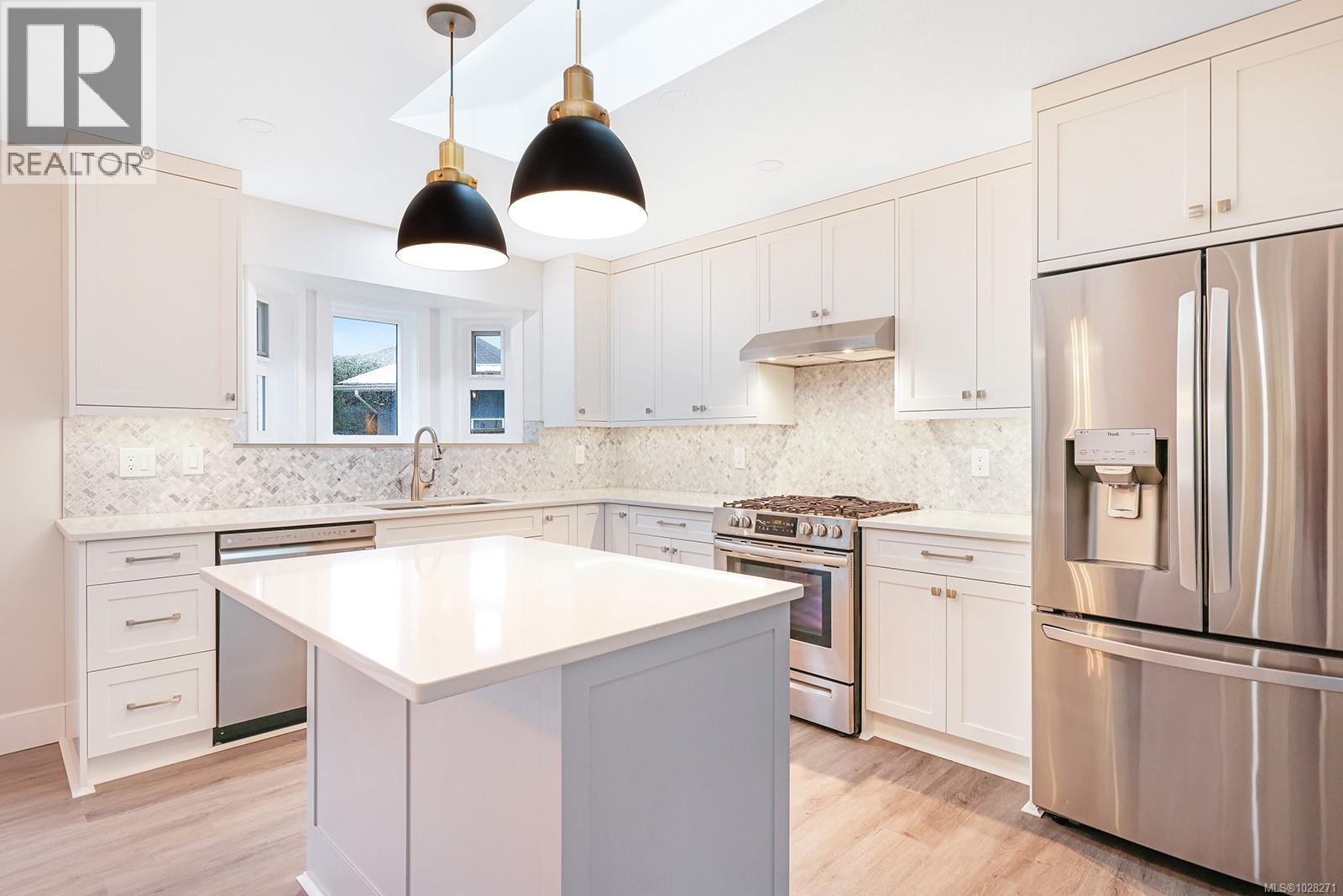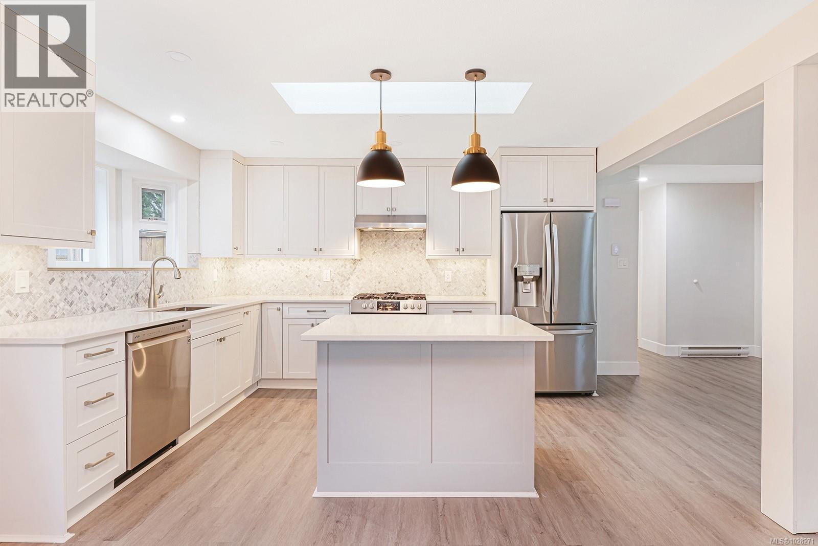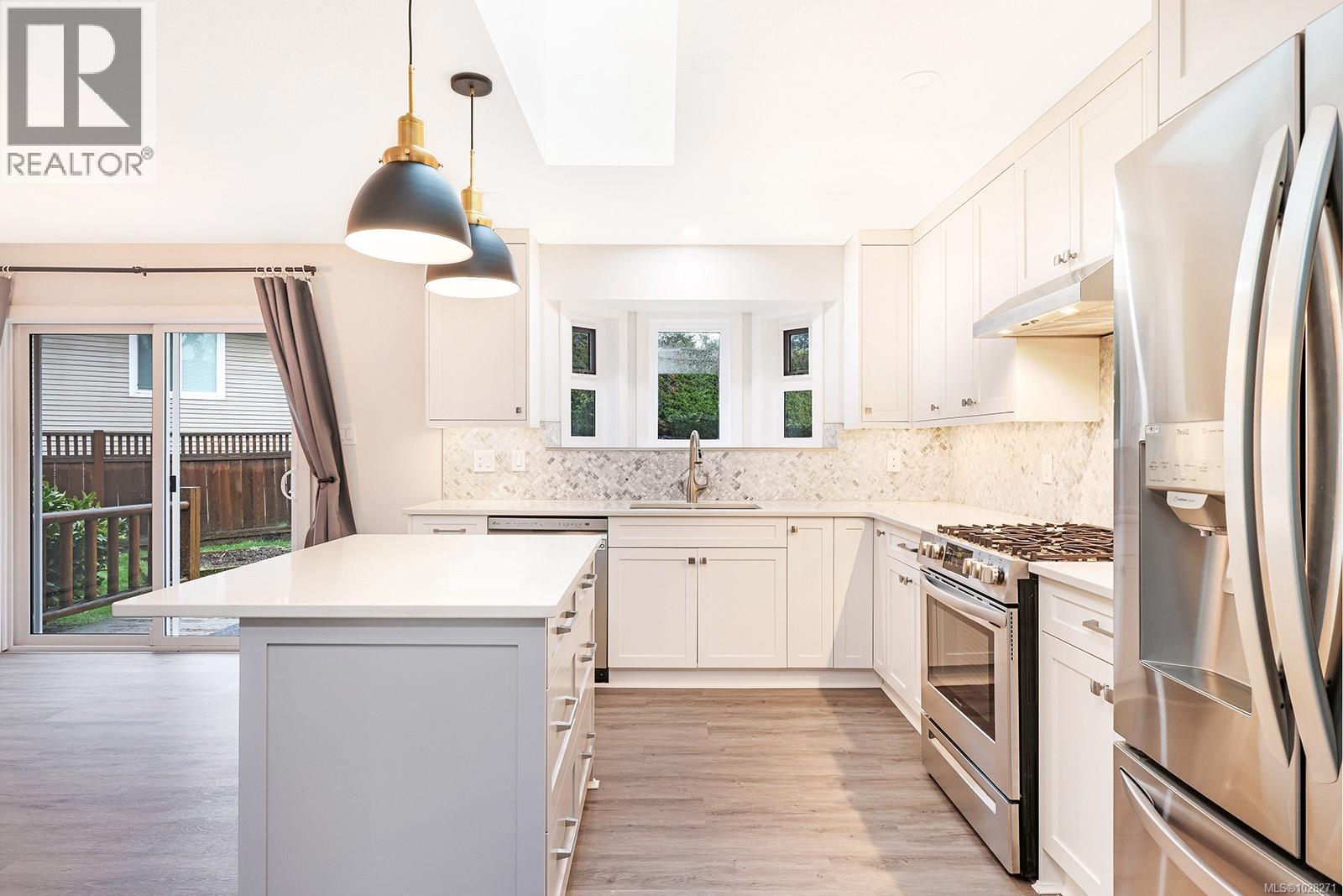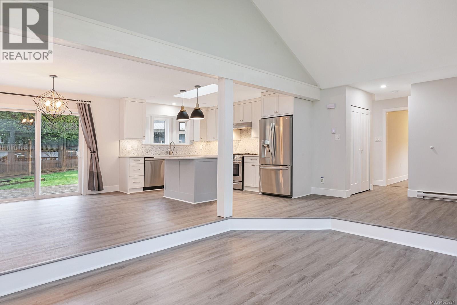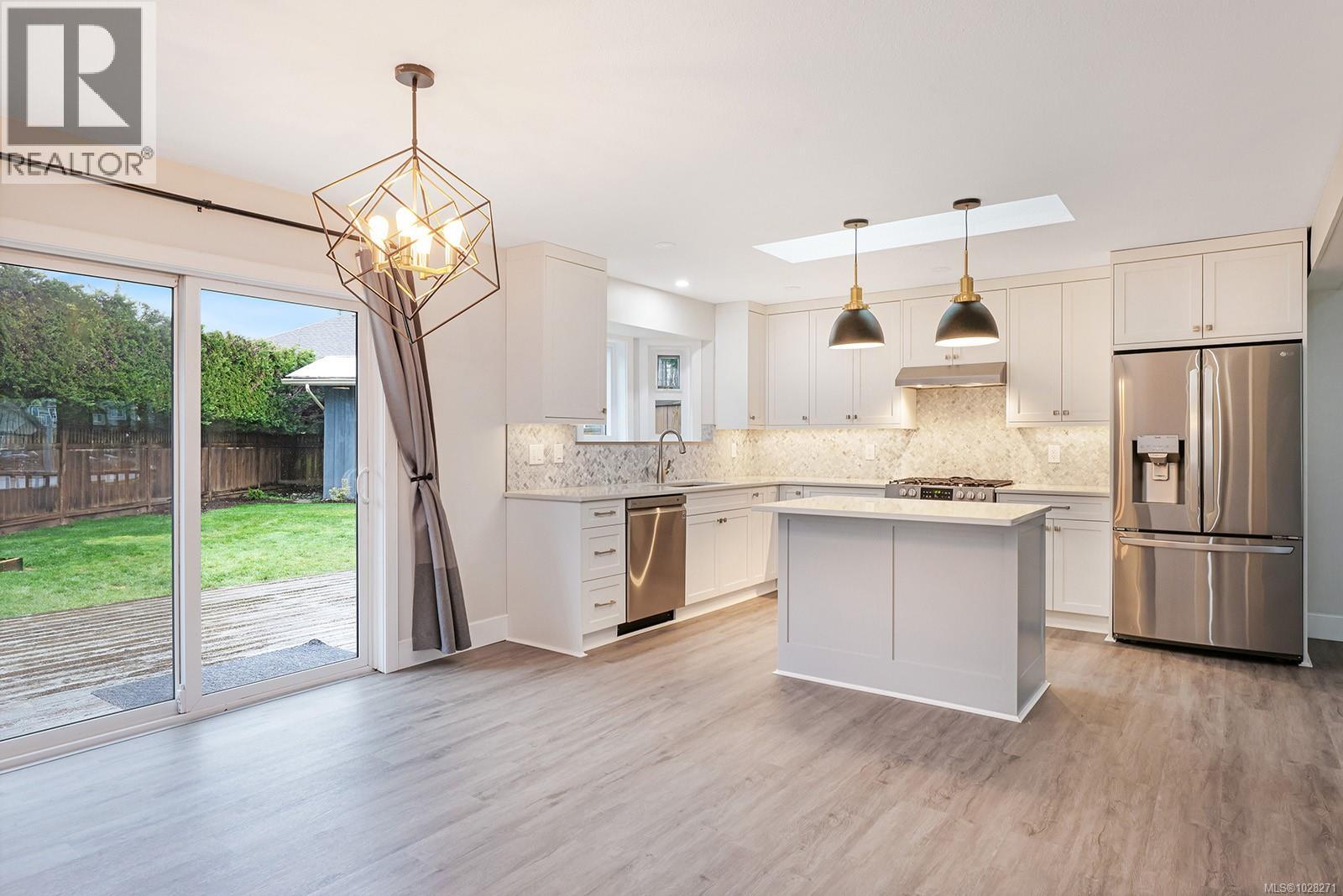 Renovated rancher with inviting covered verandah, in-law suite, and detached shop. Nestled on a quiet crescent in Aberdeen Heights, in a great school catchment, on .28 acre and close to trails, parks and all amenities. Extensive renovations and upgrades add to the charm of this spacious home boasting an open plan with many windows inviting natural daylight with 13’ vaulted ceilings, and post and beam details. The main house offers 1,553 sf, 3 BD/ 2 BA, and the suite with 416 sf, 1 BD/ 1 BA enjoy separate back decks, and separate spaces in the detached shop 11’7” x 23’7”. Upgrades include – new luxury vinyl flooring, new Craftsman front door, full interior painting, H/W tank 2024, roof, gutters & soffits 2023, main house – new kitchen, gas range & appliances, quartz counters, both bathrooms, electrical, doors, trim, baseboards, Island Basement upgrade 2022, suite reno 2021, windows & decks 2017, landscape & revitalized lawns 2024. Irrigation and raised beds. (id:37104)