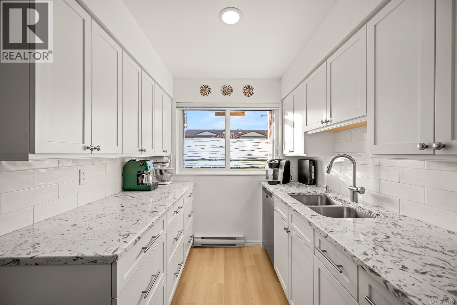 $350 MonthlyBeautifully updated 2 level townhome in central Comox is immaculate & move-in ready. The main level features hardwood laminate floors with an open plan living/dining room warmed by gas fireplace with large windows & sliding door opening to your lovely private garden & nature behind. The bright galley kitchen features newer stainless steel appliances, quartz countertops, shaker cabinets and tile backsplash – culinary inspiring. Upstairs has 3 bedrooms, including large primary bedroom, & a 2nd bathroom – all fully updated. #305 is ready to just move in and relax! Located in the highly sought after Brook Place community residents enjoy mature landscaped grounds and a welcoming outdoor pool nestled in its central courtyard. All of this just steps to parks, golf, and everyday amenities offering a walkable lifestyle in one of the areas most desirable neighborhoods. This amazing & rare opportunity is a must see – book your showing today! (id:37104)