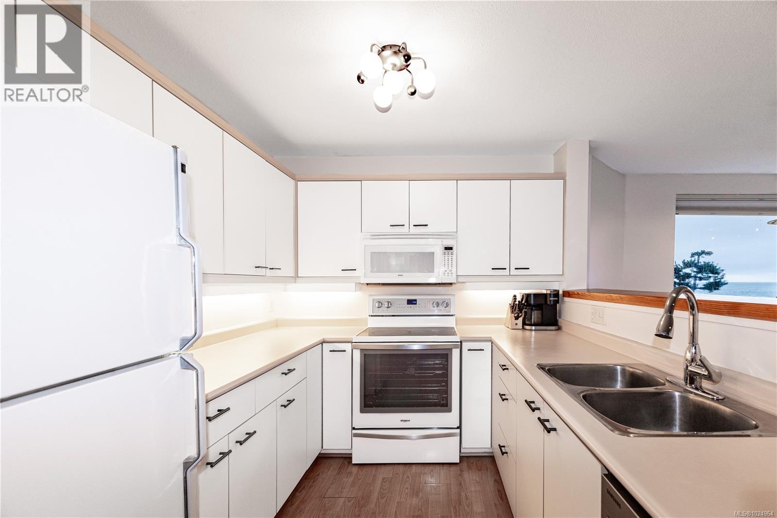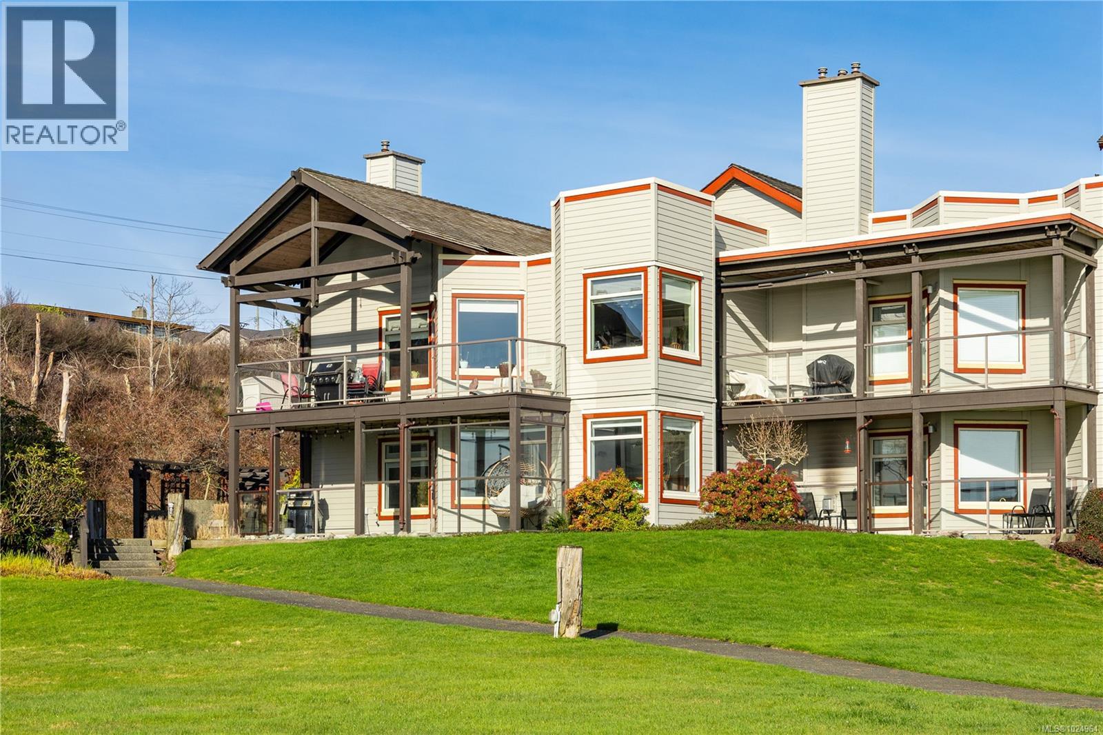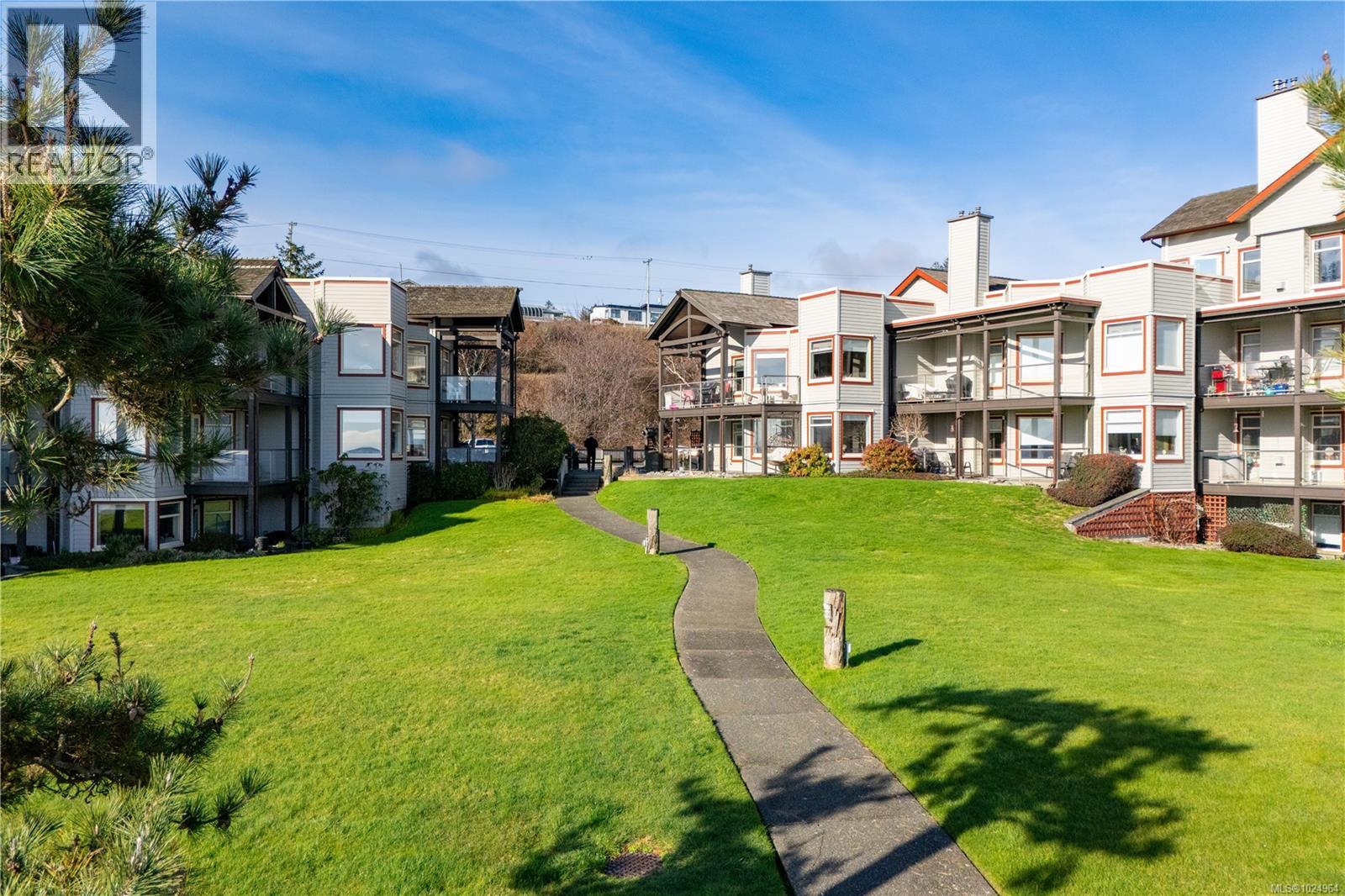 Walk on waterfront living with a resort vibe and close up ocean views! Situated in the sought-after Whaler building with roof top deck. This spacious two-bedroom, two-bath condo lives like a rancher and is among the largest in an unbeatable location, offering direct access to the beach and parking without going through the lobby. The unit boasts a unique enclosed private back patio of about 466 sq ft, perfect for pets, entertaining, or gardening, plus a front patio with breathtaking ocean views to enjoy spectacular sunrises and storm watching. The Whaler is the only building in the complex with a roof top patio, ideal for watching cruise ships and marine life, and also houses the new indoor pool, hot tub, and fitness center. Experience the island lifestyle with unique amenities like the marina for your boat (up to 26 ft length and 8.5 ft width, moorage included in strata fee) and fish cleaning station. Up to 2 dogs (30lb restriction) or 2 cats and all ages welcomed. (id:37104)