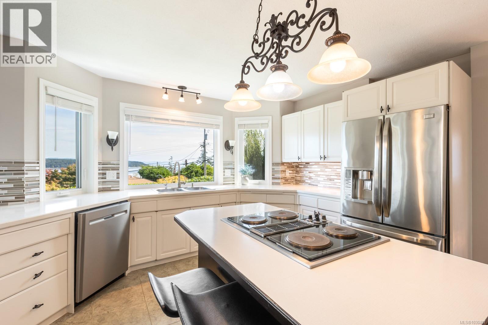 This stunning 3-level home offers breathtaking, uninterrupted views of the Discovery Passage. The custom-built residence exudes quality and craftsmanship. Set on a private 0.25-acre lot, it features 5 spacious bedrooms, 3 bathrooms, and a chef-inspired kitchen with an inviting eating area. The elegant dining room opens onto a large patio, ideal for entertaining or soaking in the ocean vistas. The fenced backyard is a private oasis, while the side yard offers 35 feet of green space next to the neighbour’s home for added privacy. Explore the beautifully landscaped gardens, with serene sitting areas, tranquil ponds, and the gentle flow of marine traffic. This home blends thoughtful design, incredible views, and ample space, creating the perfect family sanctuary. A rare vendor financing opportunity you won’t want to miss. For more information, please contact Ronni Lister at 250-702-7252 or ronnilister.com. (id:37104)