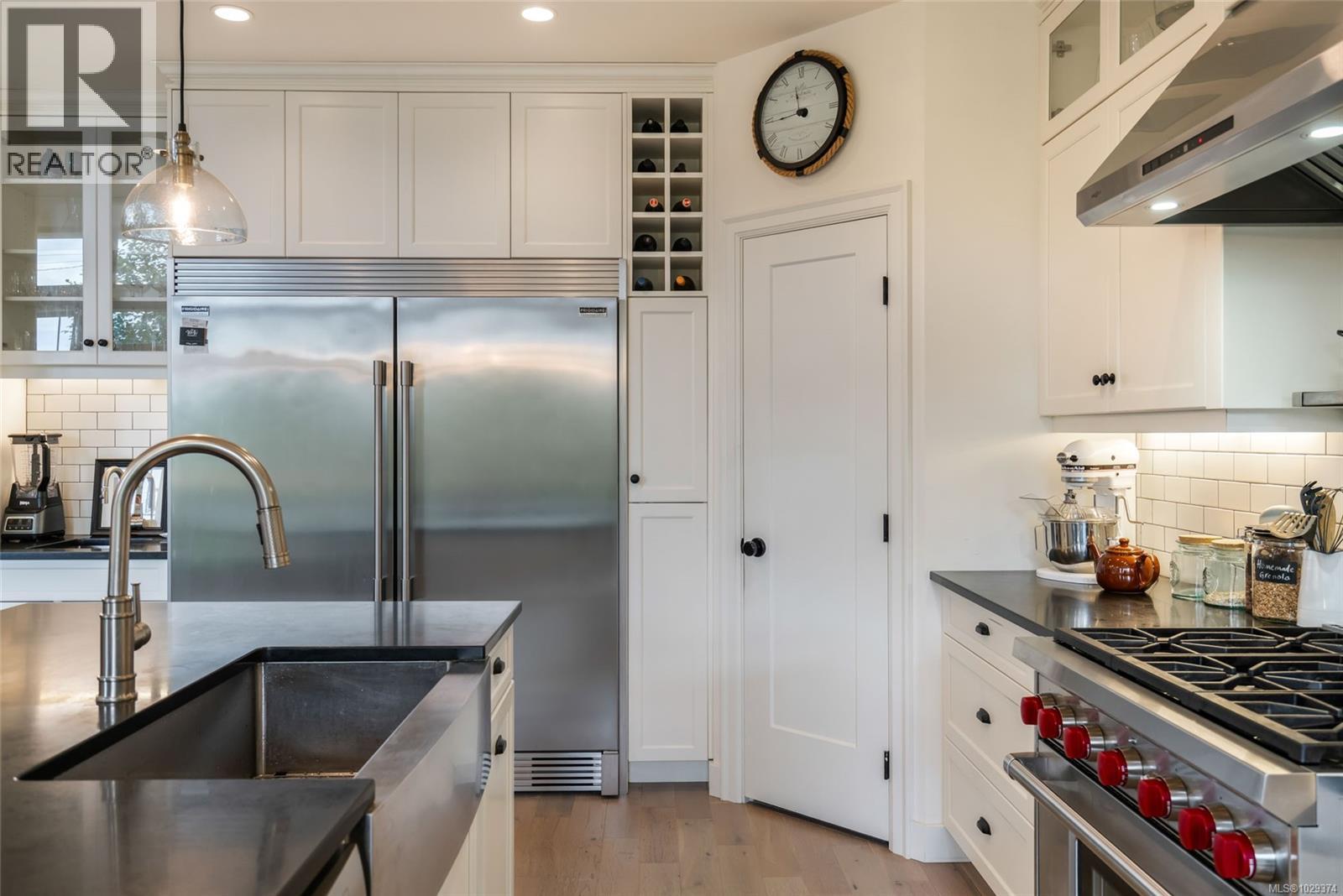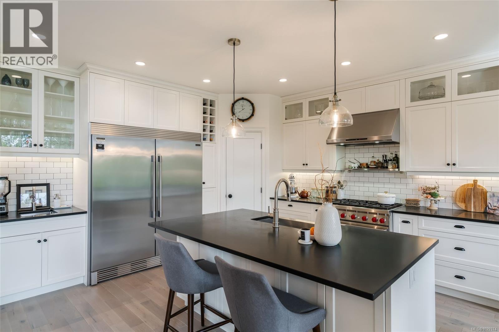 A rare offering in coveted Stories Beach this 3200+ sq ft custom residence captures refined coastal living with effortless sophistication. Set on a private, landscaped 1/4 acre just steps to the ocean, the home is designed to inspire. Soaring 12’ coffered ceilings, white oak floors, and natural light create an atmosphere of understated luxury. The chef’s kitchen, anchored by a 6-burner Wolf range flows seamlessly into an elegant great room & piano lounge perfect for intimate evenings or elevated entertaining. A flex den/4th bed adds options. A dramatic stairwell with stacked windows leads to an upper retreat featuring a K2 stone fireplace, wet bar, and ocean-view deck. The primary suite is a sanctuary with vaulted ceilings and a 5 pc spa-inspired ensuite. 2 more bedrooms with ensuites offer flexibility for family, guests or income potential. With an elevator-ready design, detached shop, and curated finishes throughout, this is a home that speaks to lifestyle, legacy, and quiet luxury. (id:37104)