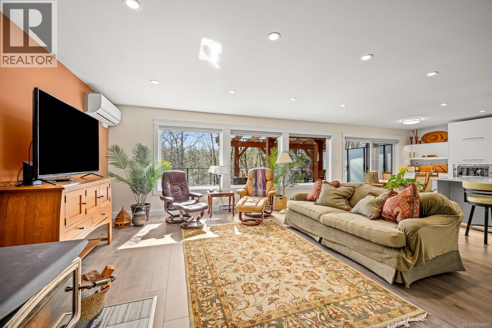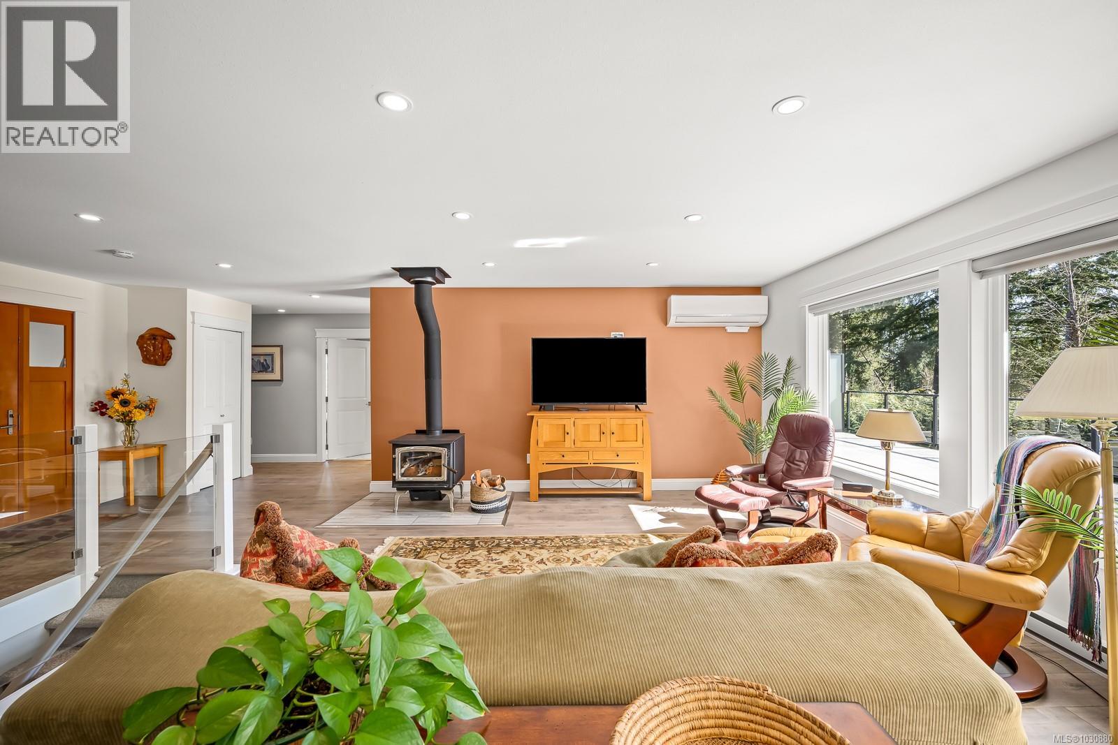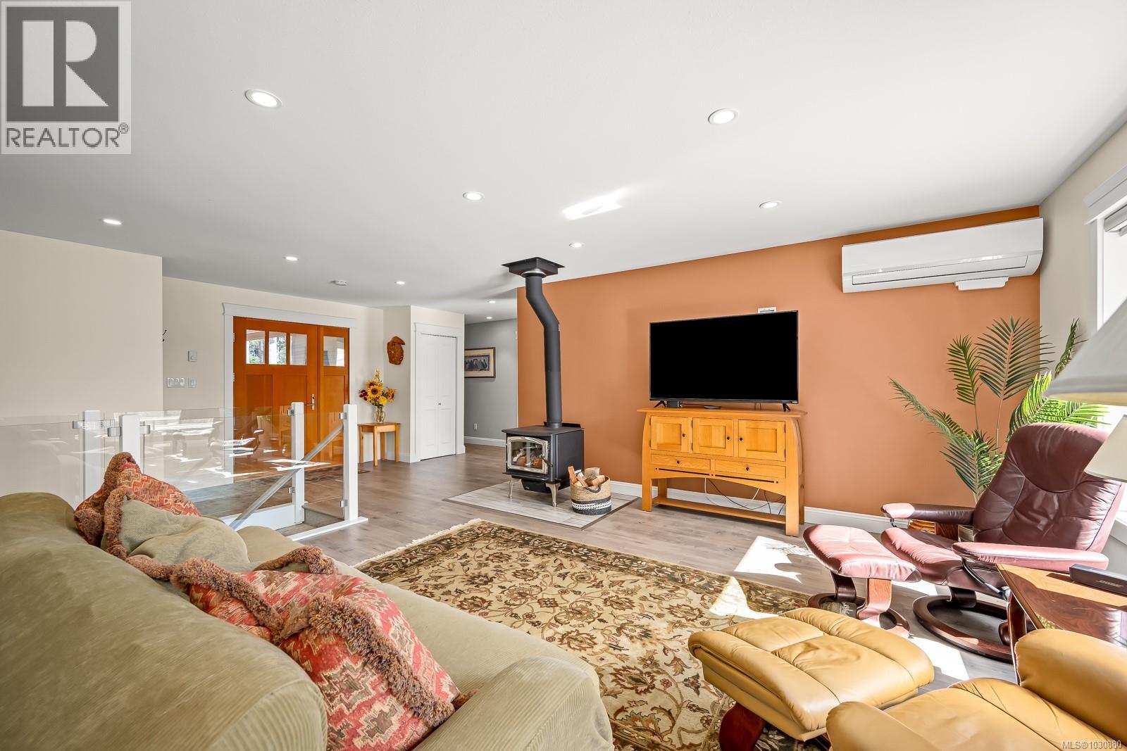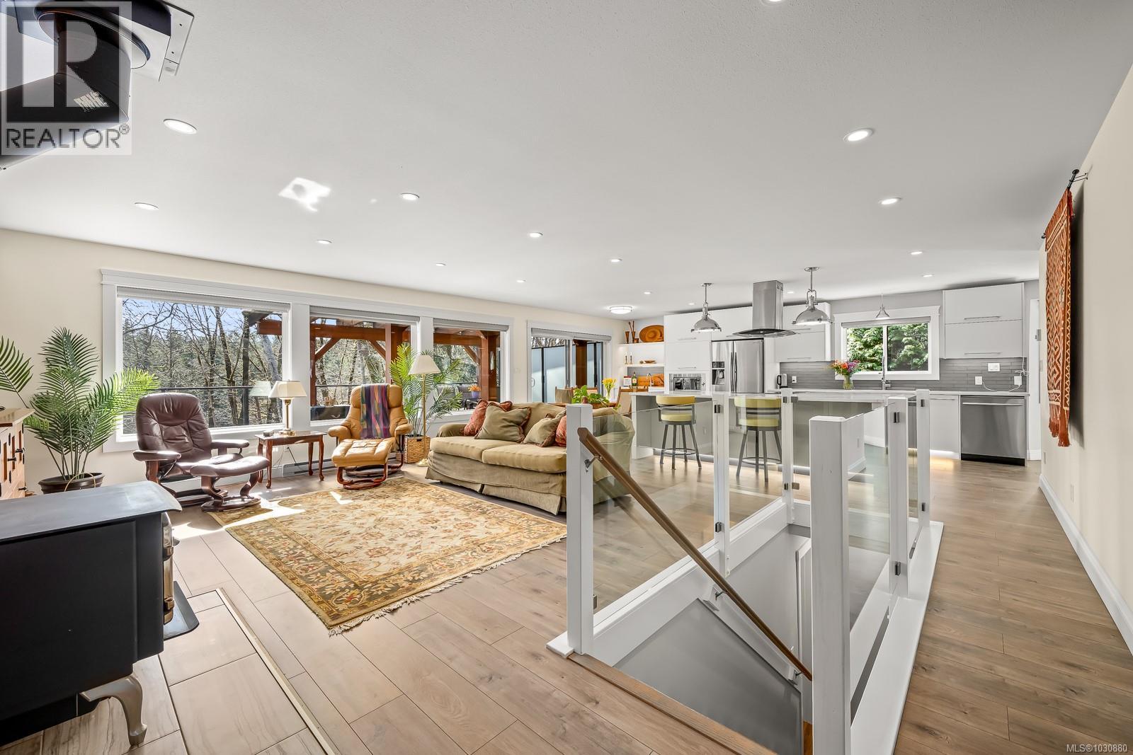 This beautifully renovated, modern rancher with walk-out basement sits on a private 0.61-acre high bank riverfront property on the Puntledge River, offering space, style & stunning natural backdrop. With 2,982 sq ft spread over two levels, this 4-bedroom, 3-bathroom home features a bright, open-concept layout filled with natural light. The main living area is warm & inviting with a cozy woodstove, while the sleek, modern kitchen is perfect for everyday living or entertaining. Step outside to the expansive deck—ideal for hosting or simply relaxing while taking in the peace & tranquility. The lower level has a flexible floor plan with a spacious family room, bedroom, & bath; perfect for teens, guests or extended family. Additional highlights include a heat pump for year-round comfort, beautifully landscaped grounds, and a serene, treed setting that enhances privacy and connection to nature. This is a rare opportunity to own your own private oasis that’s only a short drive to the amenities of town, Mt. Washington Alpine Resort & the mountain biking mecca of Cumberland. (id:37104)