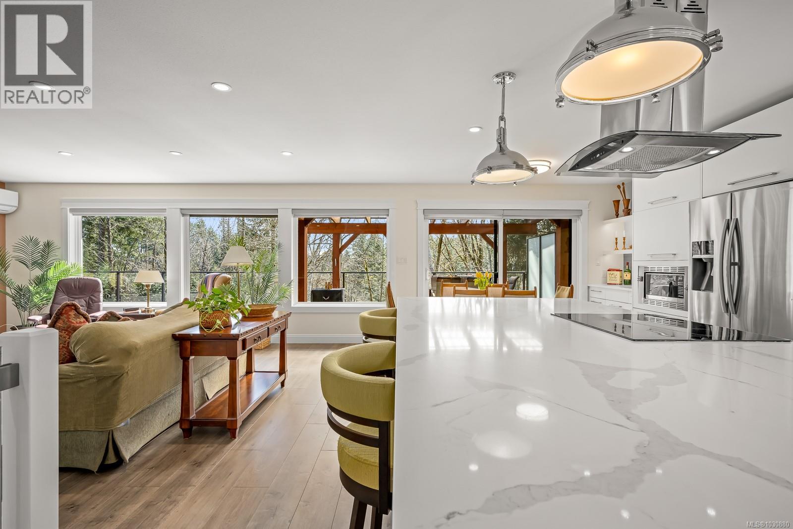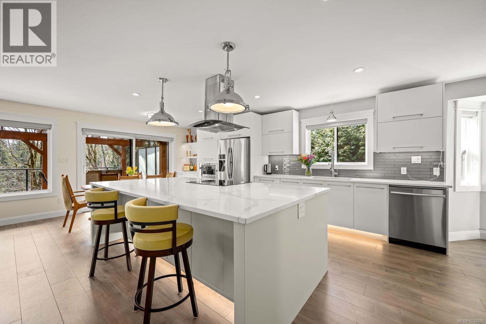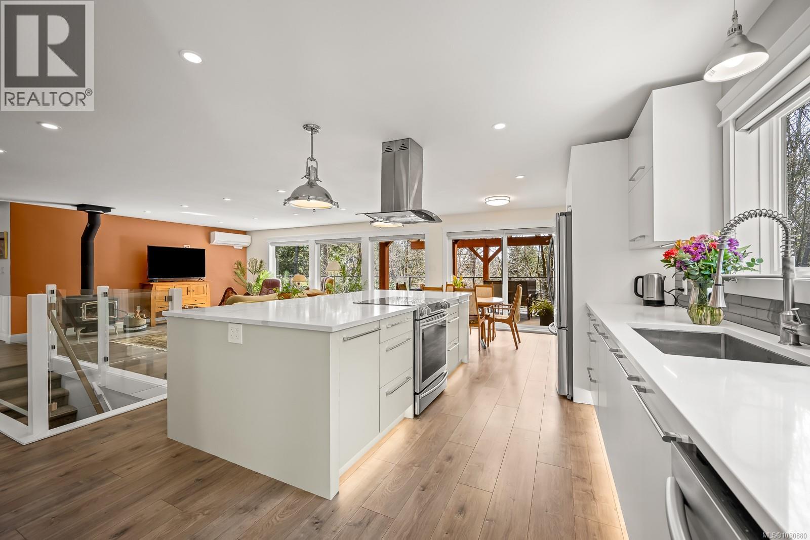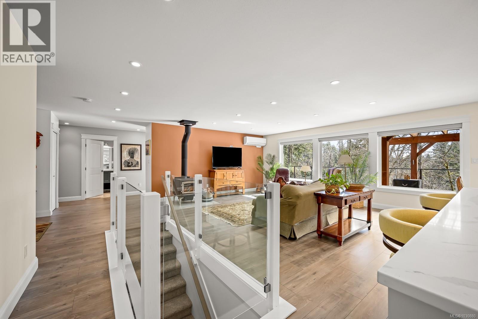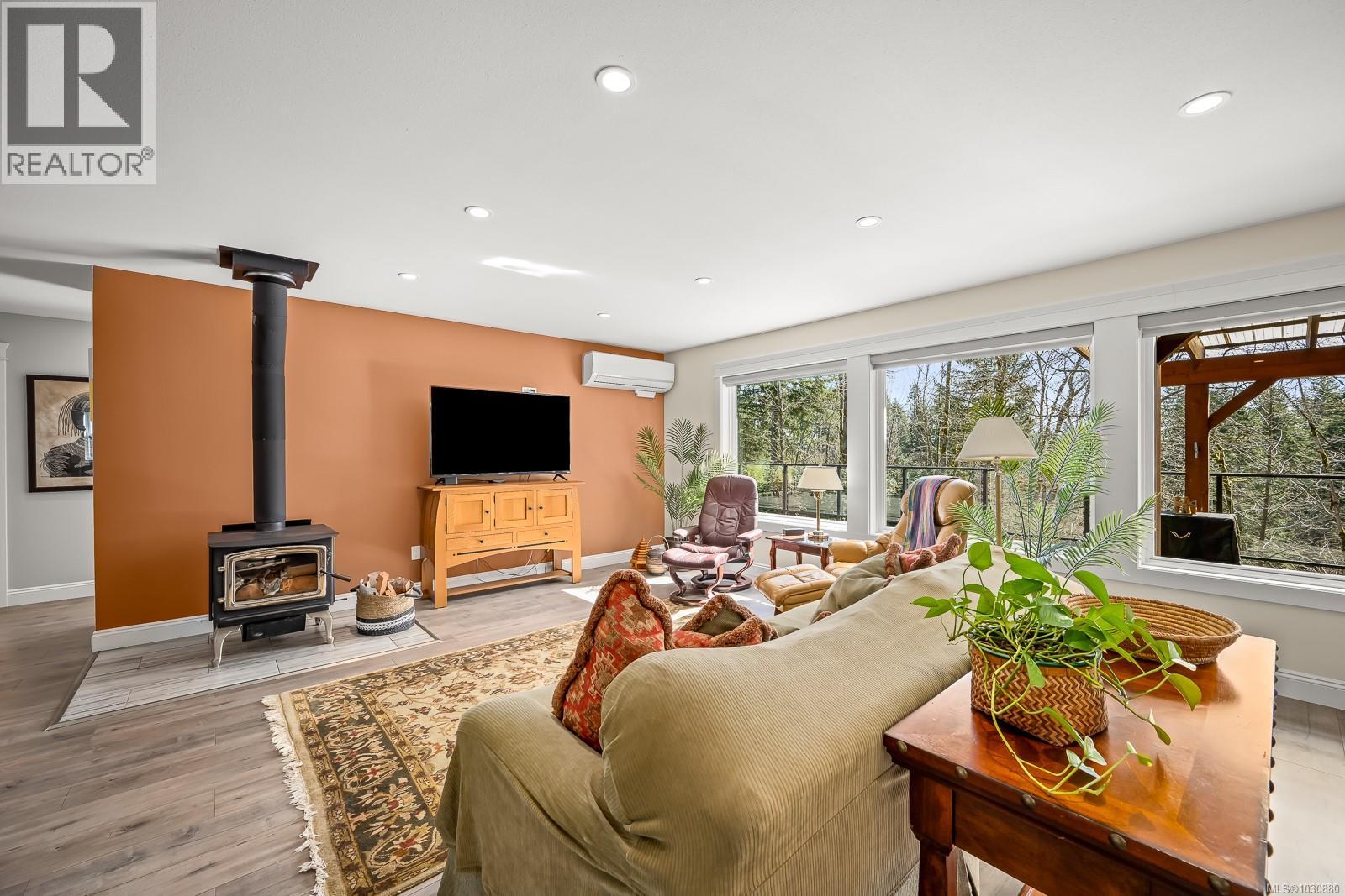 This beautifully renovated, modern rancher with walk-out basement sits on a private 0.61-acre high bank riverfront property on the Puntledge River, offering space, style & stunning natural backdrop. With 2,982 sq ft spread over two levels, this 4-bedroom, 3-bathroom home features a bright, open-concept layout filled with natural light. The main living area is warm & inviting with a cozy woodstove, while the sleek, modern kitchen is perfect for everyday living or entertaining. Step outside to the expansive deck—ideal for hosting or simply relaxing while taking in the peace & tranquility. The lower level has a flexible floor plan with a spacious family room, bedroom, & bath; perfect for teens, guests or extended family. Additional highlights include a heat pump for year-round comfort, beautifully landscaped grounds, and a serene, treed setting that enhances privacy and connection to nature. This is a rare opportunity to own your own private oasis that’s only a short drive to the amenities of town, Mt. Washington Alpine Resort & the mountain biking mecca of Cumberland. (id:37104)