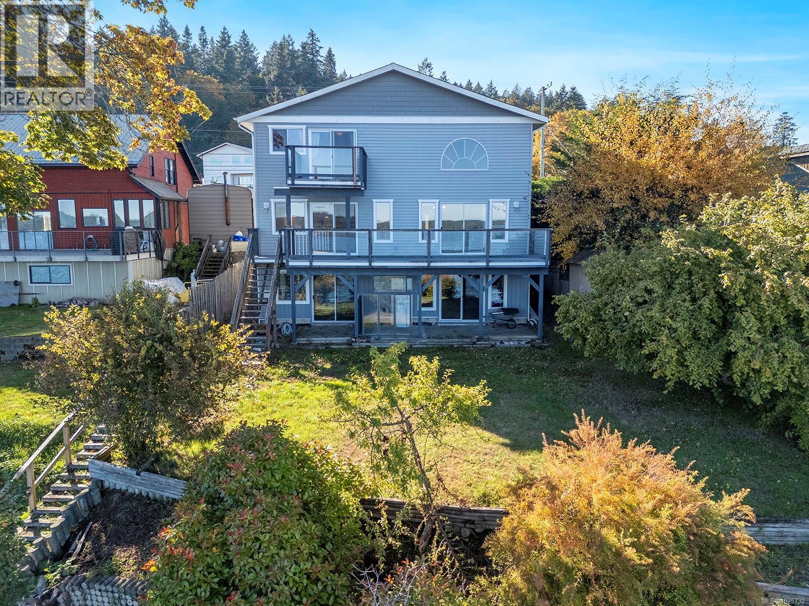 Welcome to your waterfront dream in charming Union Bay. This massive 4000+ sq. ft. home offers unparalleled views to the east across Baynes Sound. Greet the sunrise from your private upstairs balcony and luxuriate in the massive ensuite off the primary bedroom. The main home's three bedrooms and three bathrooms provide ample space for family living. Entertain from the large balcony and watch sailboats drift lazily-by or storms roll-in dramatically from the comfort of two spacious living rooms. Abundant natural light complements the high walls—perfect for your art collection. A generous office overlooks the living area, while a flexible ground-floor space offers the ideal home for your studio, workshop, library, or gym. The downstairs in-law suite provides a private retreat for friends and family. While this extraordinary property needs updating, its proximity to town and solid bones make it an exceptional opportunity to create your custom oceanfront estate. (id:37104)