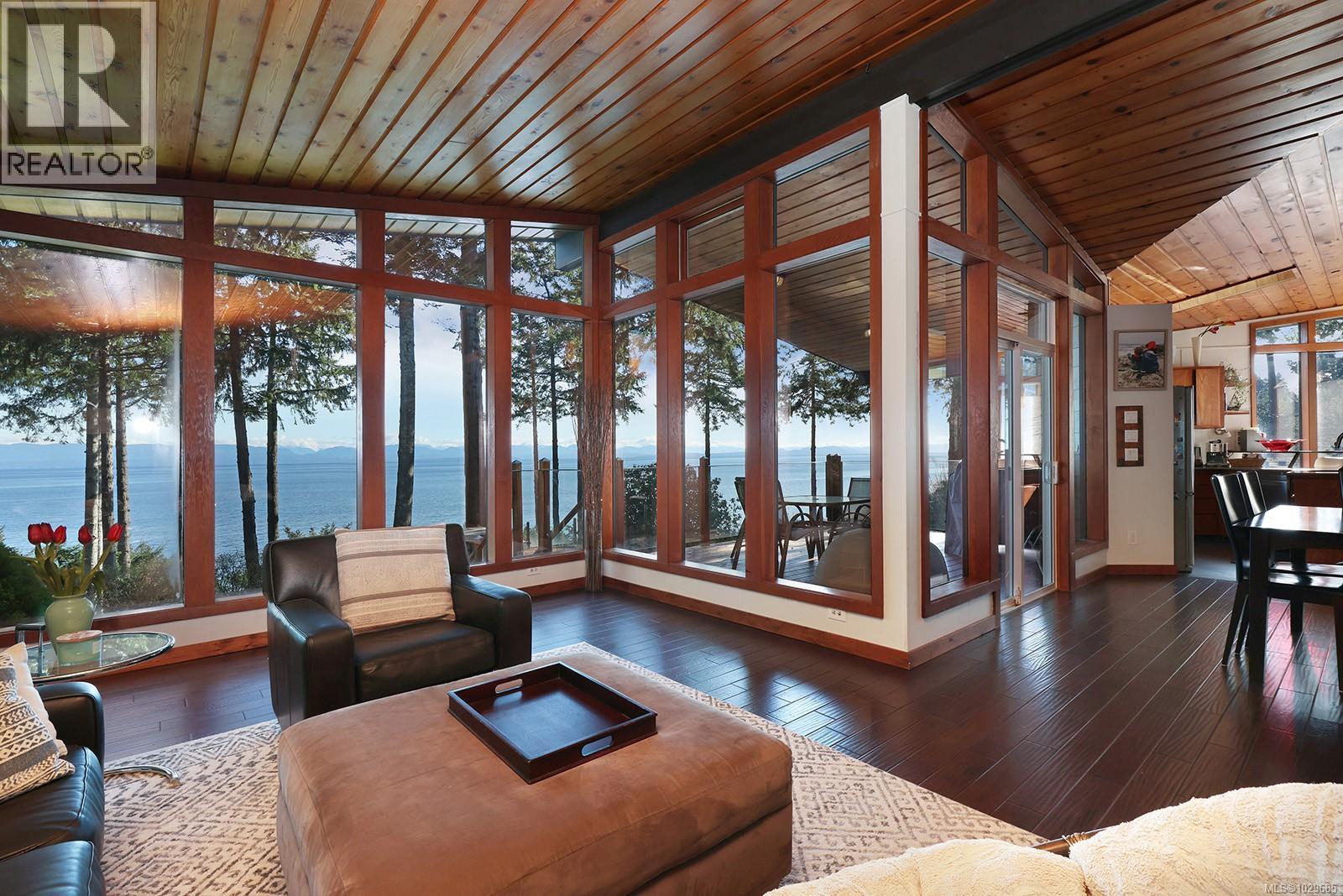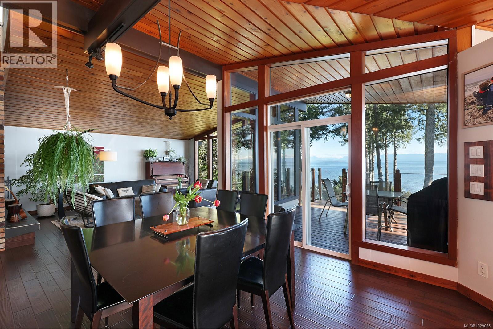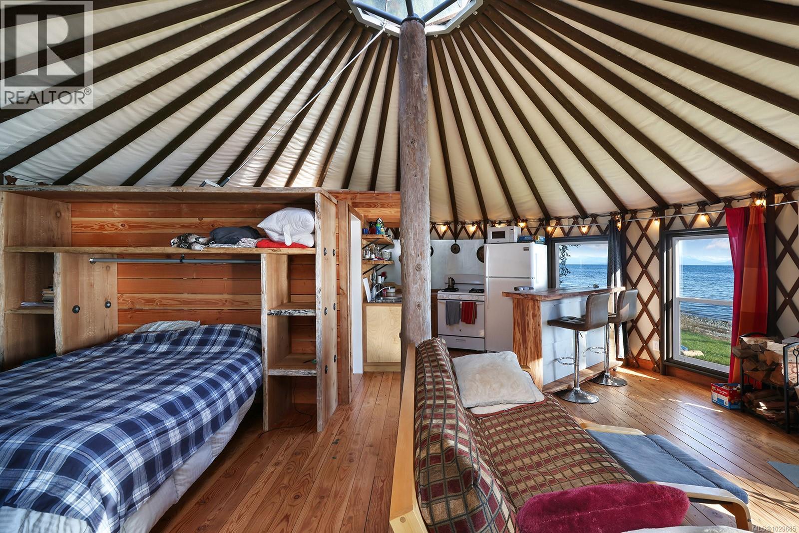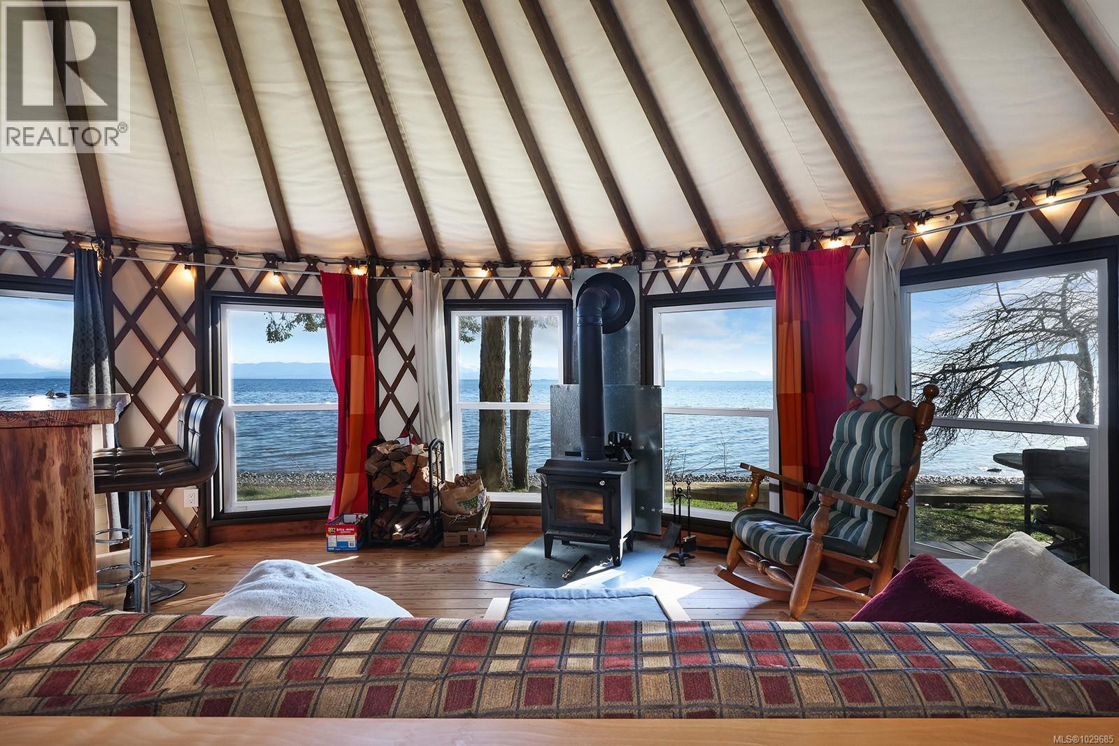 Stunning oceanfront home, plus a detached shop, a self-contained beachfront yurt, and an acre of property! Perched on semi-highbank property, the views here are spectacular and ever-changing throughout the tides and seasons. Inside, the 3000 sq ft home has been extensively renovated throughout, showcasing rich wood tones and original vaulted ceilings. The newer detached shop has a double garage plus two nicely sized rooms above currently used as a gym and a workshop - an easy conversion to additional living space if desired, or use as a home based business. Walk down the forested staircase to the ocean and find the charming yurt set right at the foot of your own private beach! The low tides reveal a sandy coastline - one of the best spots around for exploring and swimming. Newer septic system, upgraded drainage, and good drinking water. Just minutes to Comox and even closer to Seal Bay Park. This truly is the complete oceanfront package. (id:37104)