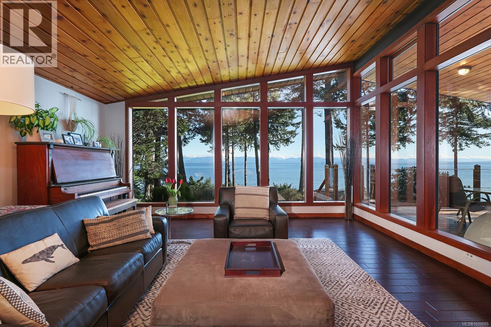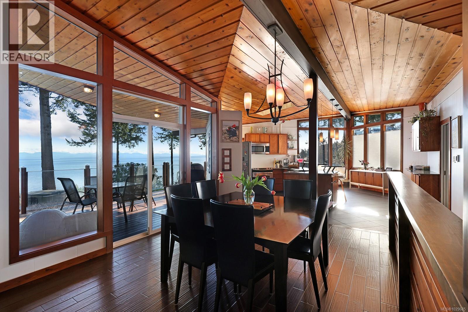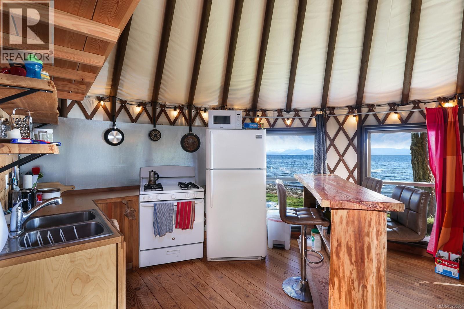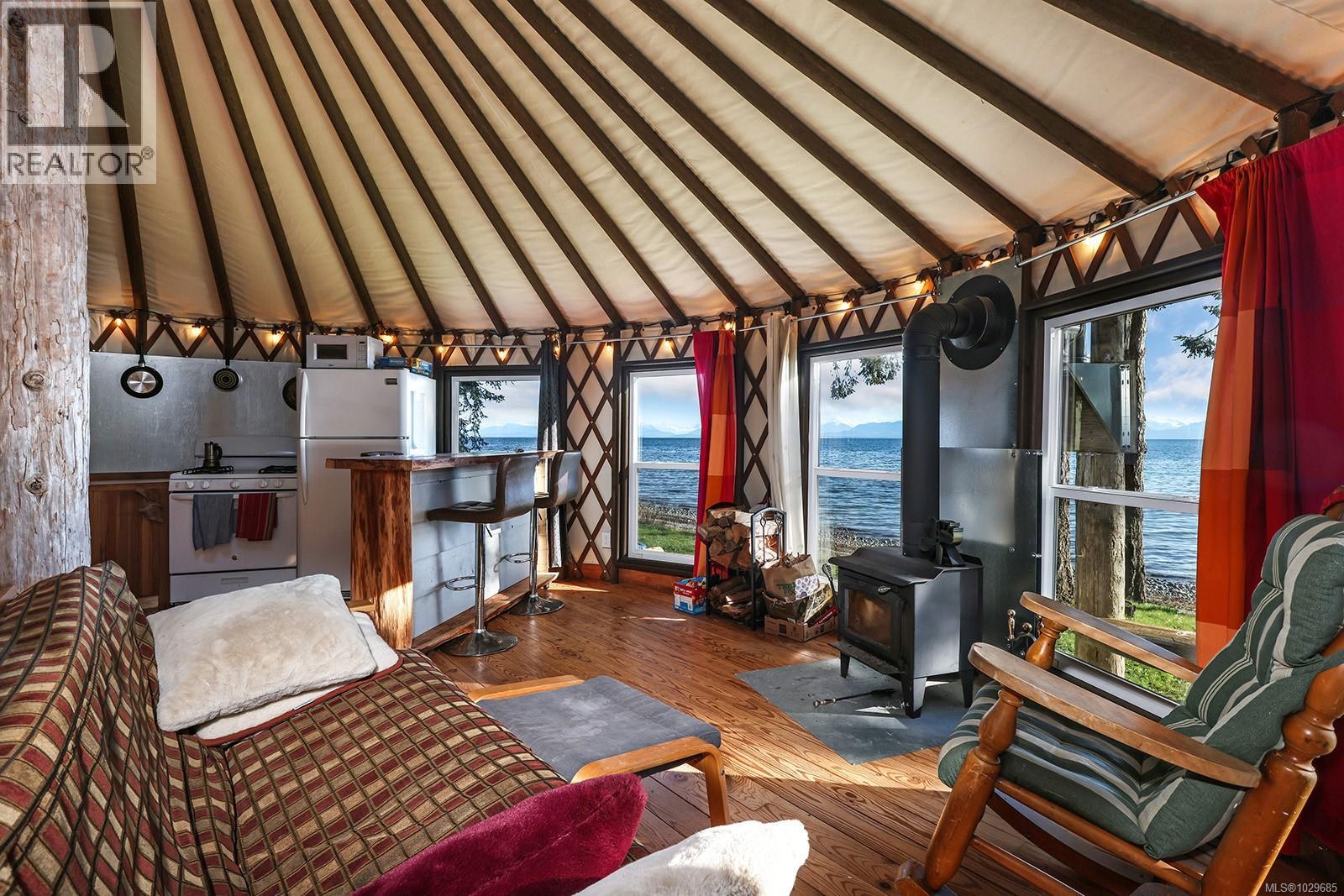 Stunning oceanfront home, plus a detached shop, a self-contained beachfront yurt, and an acre of property! Perched on semi-highbank property, the views here are spectacular and ever-changing throughout the tides and seasons. Inside, the 3000 sq ft home has been extensively renovated throughout, showcasing rich wood tones and original vaulted ceilings. The newer detached shop has a double garage plus two nicely sized rooms above currently used as a gym and a workshop - an easy conversion to additional living space if desired, or use as a home based business. Walk down the forested staircase to the ocean and find the charming yurt set right at the foot of your own private beach! The low tides reveal a sandy coastline - one of the best spots around for exploring and swimming. Newer septic system, upgraded drainage, and good drinking water. Just minutes to Comox and even closer to Seal Bay Park. This truly is the complete oceanfront package. (id:37104)
