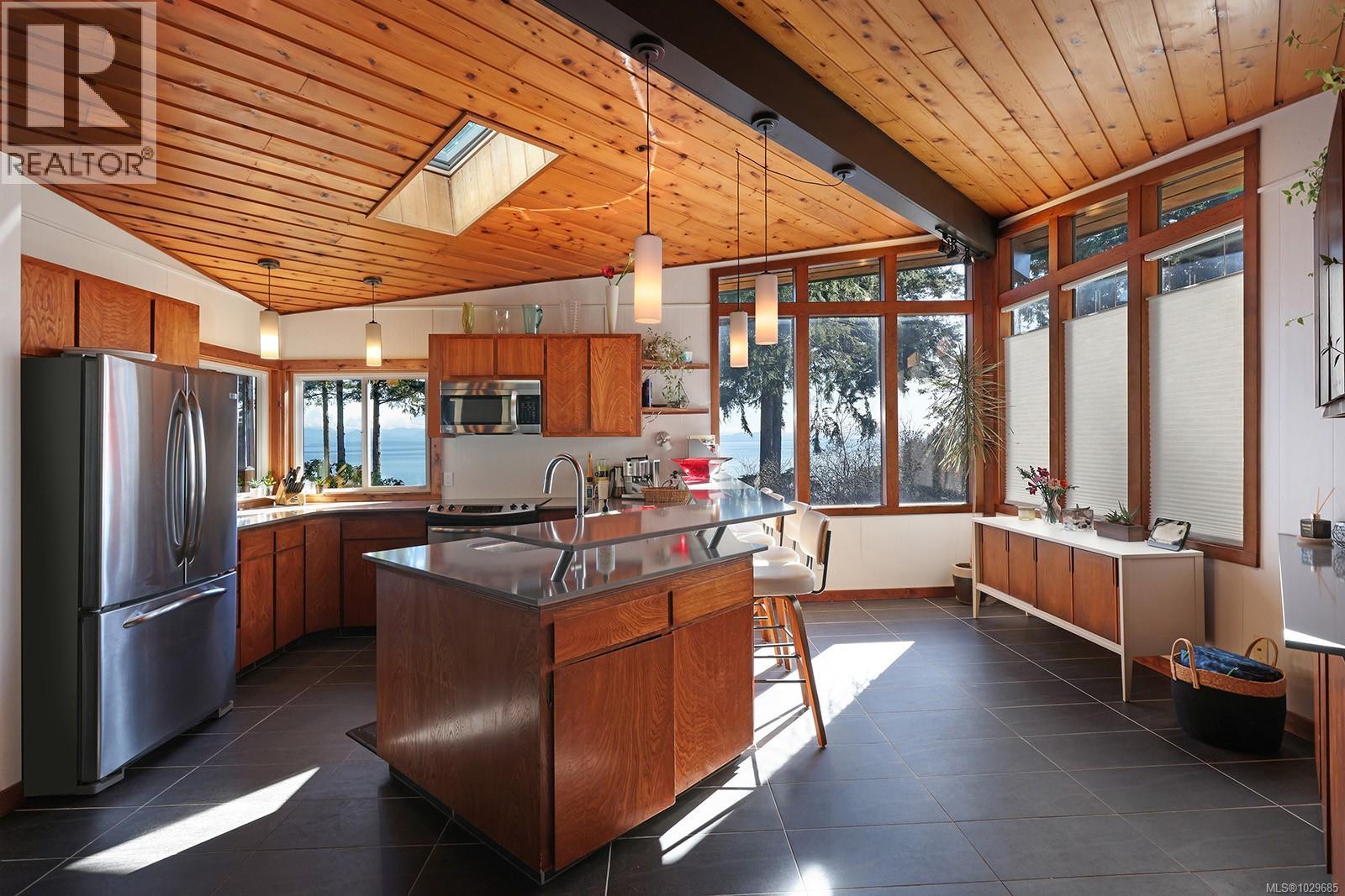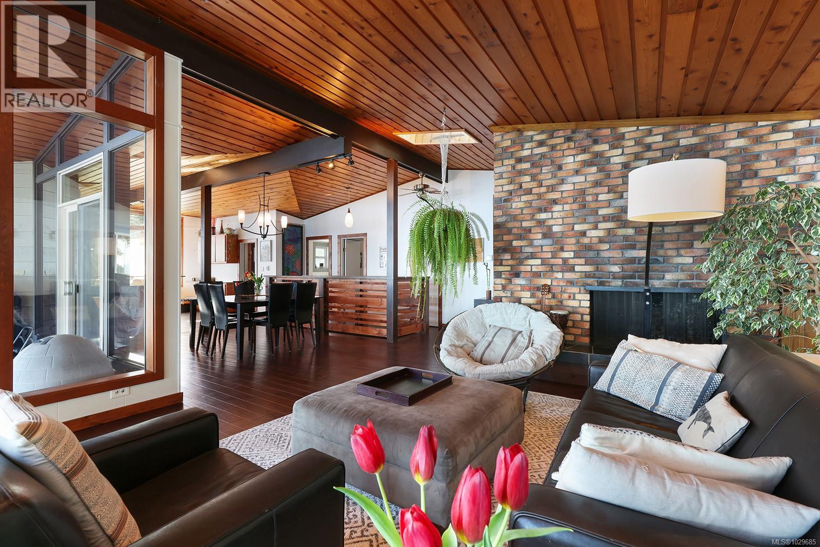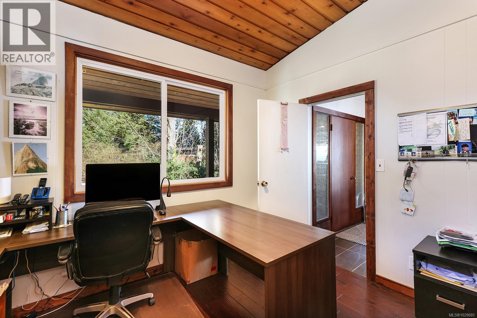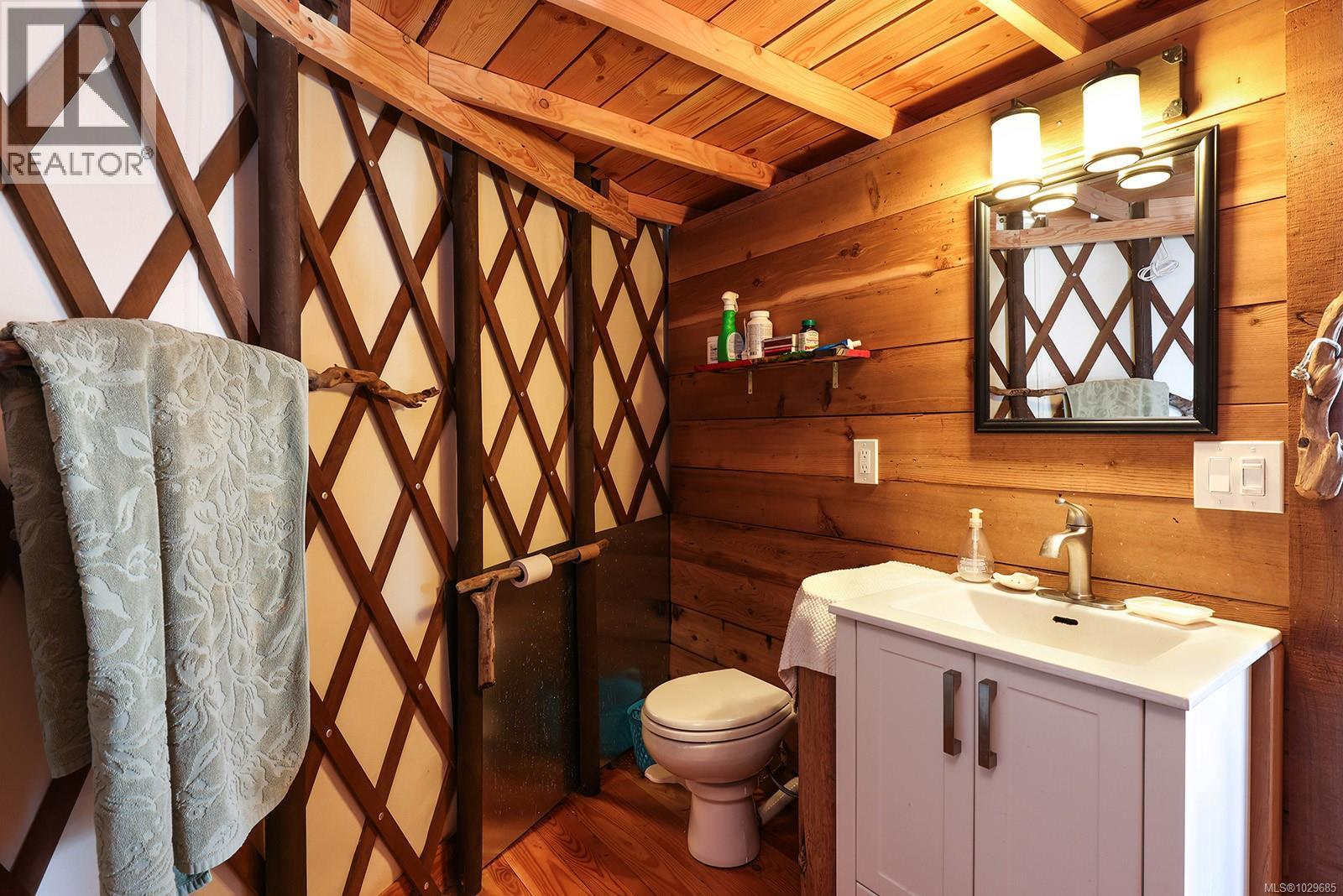 Stunning oceanfront home, plus a detached shop, a self-contained beachfront yurt, and an acre of property! Perched on semi-highbank property, the views here are spectacular and ever-changing throughout the tides and seasons. Inside, the 3000 sq ft home has been extensively renovated throughout, showcasing rich wood tones and original vaulted ceilings. The newer detached shop has a double garage plus two nicely sized rooms above currently used as a gym and a workshop - an easy conversion to additional living space if desired, or use as a home based business. Walk down the forested staircase to the ocean and find the charming yurt set right at the foot of your own private beach! The low tides reveal a sandy coastline - one of the best spots around for exploring and swimming. Newer septic system, upgraded drainage, and good drinking water. Just minutes to Comox and even closer to Seal Bay Park. This truly is the complete oceanfront package. (id:37104)