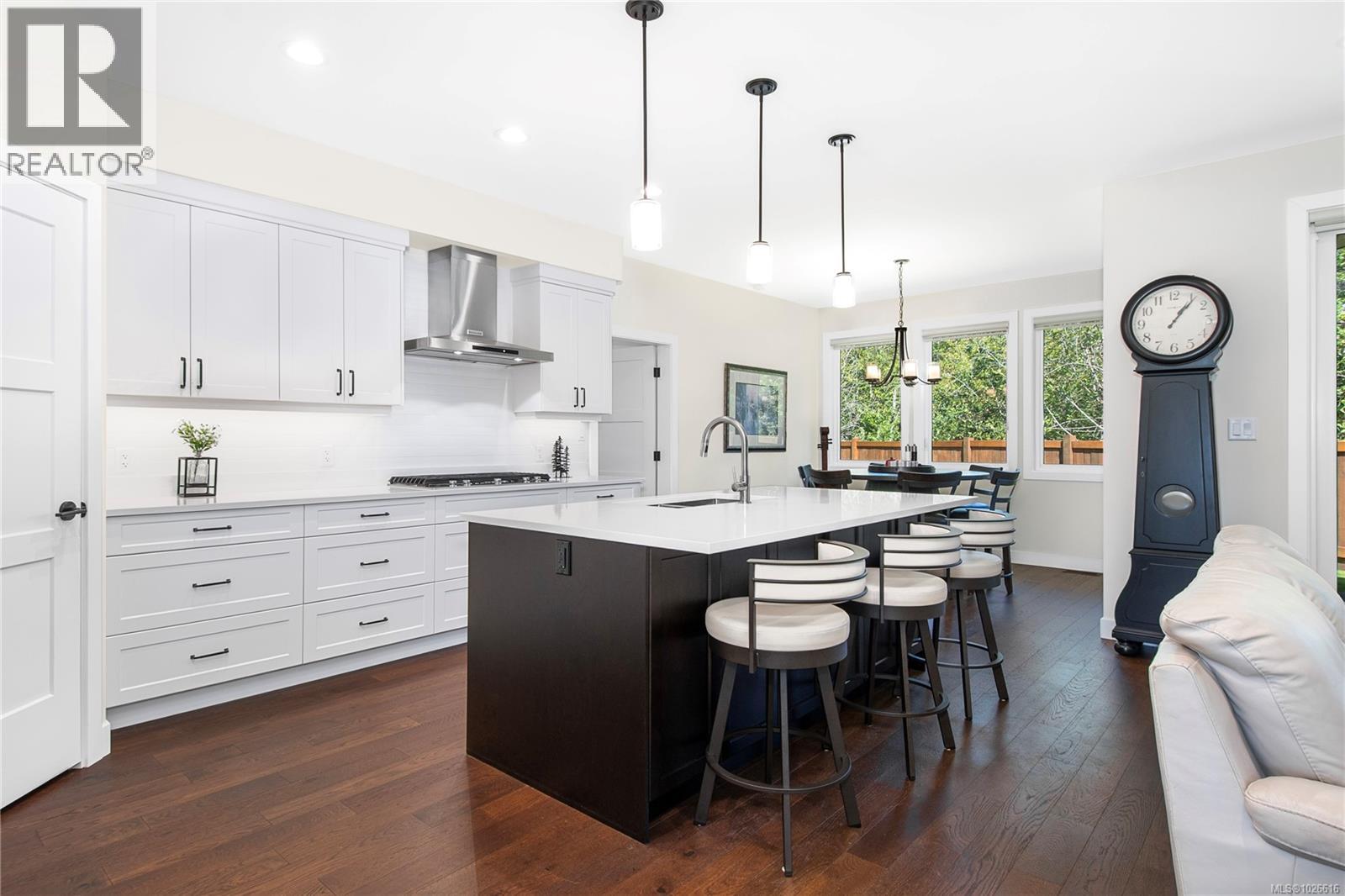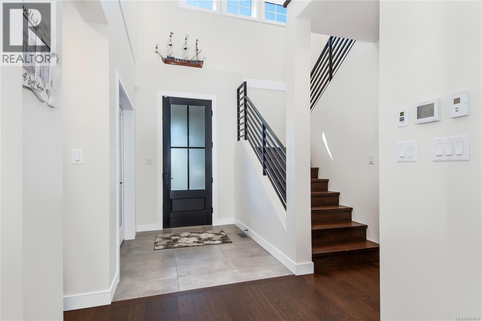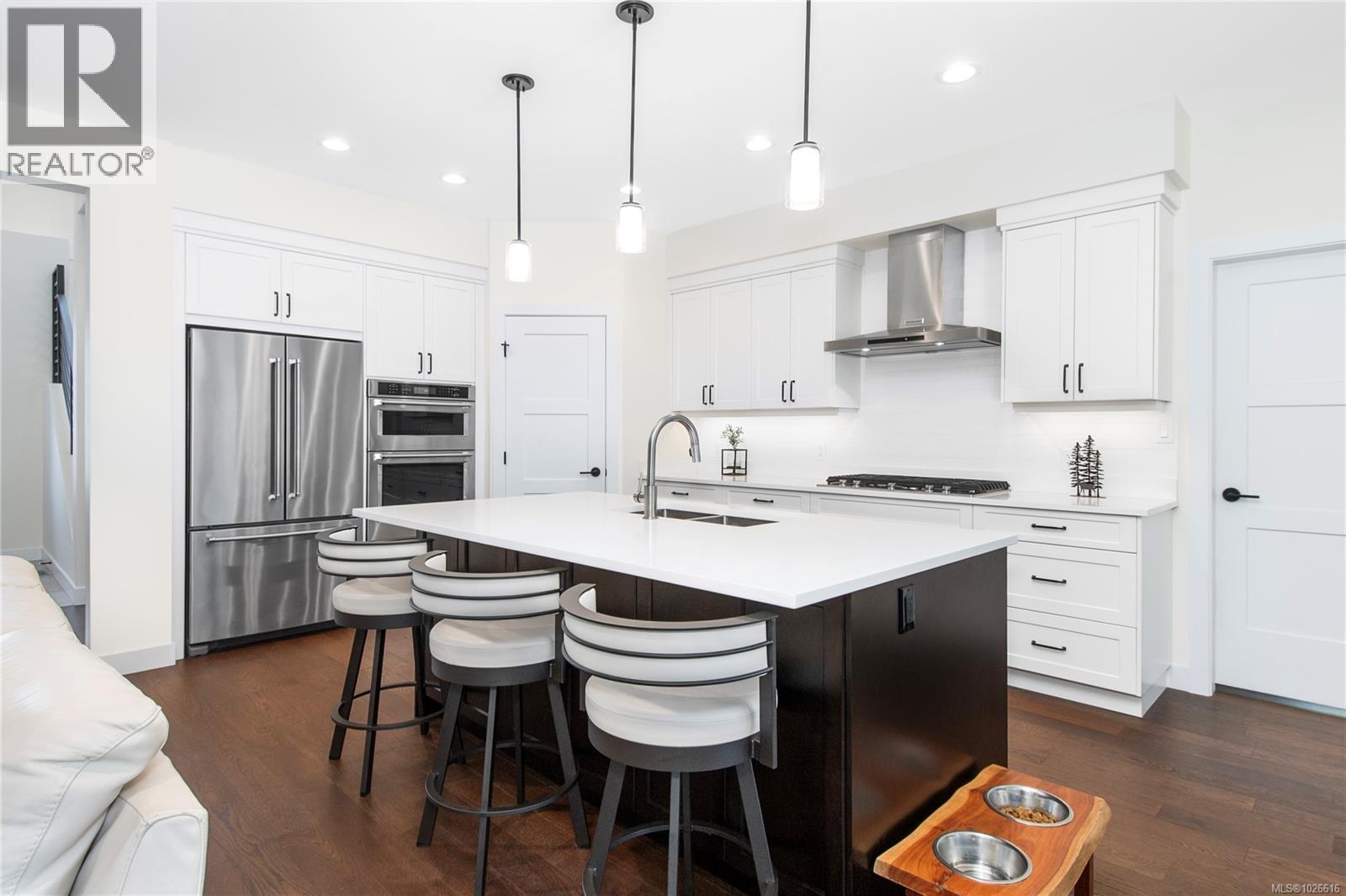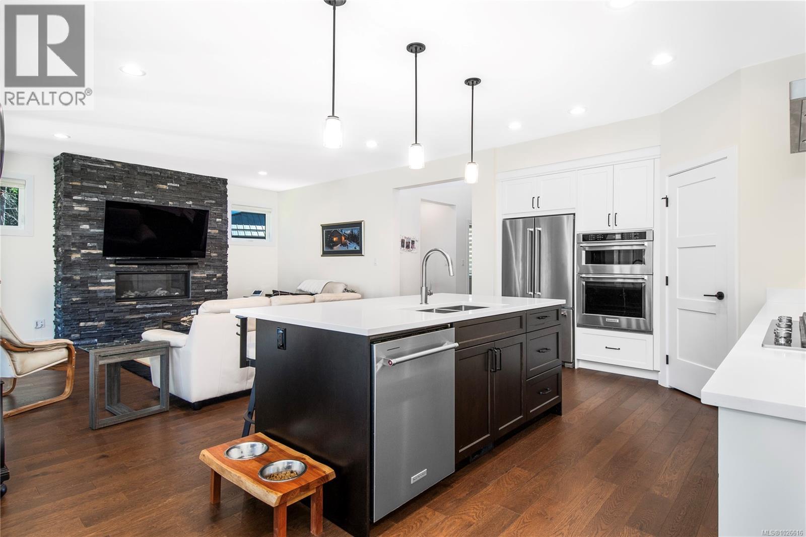 Exquisite 3-year-old custom-built home in one of the area’s most desirable neighbourhoods, offering a perfect balance of modern design and timeless comfort. From the moment you arrive, the quality and craftsmanship are undeniable—beginning with the striking exterior trim package, 8-foot entry door, and welcoming foyer with an open staircase accented by elegant metal railings. The main floor showcases nearly 1,600 sq. ft. of thoughtfully designed living space. Soaring ceilings and a light-filled palette create an airy atmosphere, enhanced by a dramatic wall of floor-to-ceiling windows and doors opening to a covered patio. At the heart of the home, a stunning modern kitchen features premium appliances, including a double built-in wall oven and 5-burner gas cooktop, sleek cabinetry, and a spacious layout designed for both everyday living and entertaining. A striking black rock fireplace serves as the great room’s showpiece, adding warmth and style. The main-level primary suite is a true retreat, complete with a spacious walk-in closet featuring custom organizers, direct patio access, and a spa-inspired ensuite with luxury finishes. Practical touches such as quality power blinds and dramatic hardwood floors elevate the home even further. There is also a den functionally located at the front entry. Upstairs, two additional bedrooms and a full bathroom provide the perfect space for family or guests. The laundry and mudroom will impress any homemaker, offering exceptional organization and functionality. Outdoors, the .28-acre fully fenced lot provides room to relax, entertain, or play—ideal for families, pets, or gardening enthusiasts. room for RV parking and access for backyard workshop located on the left side of the driveway—if you reposition the existing garden to a different location on the property This residence blends elegance, function, and sophistication in every detail. A rare opportunity to own a home where design meets lifestyle. (id:37104)