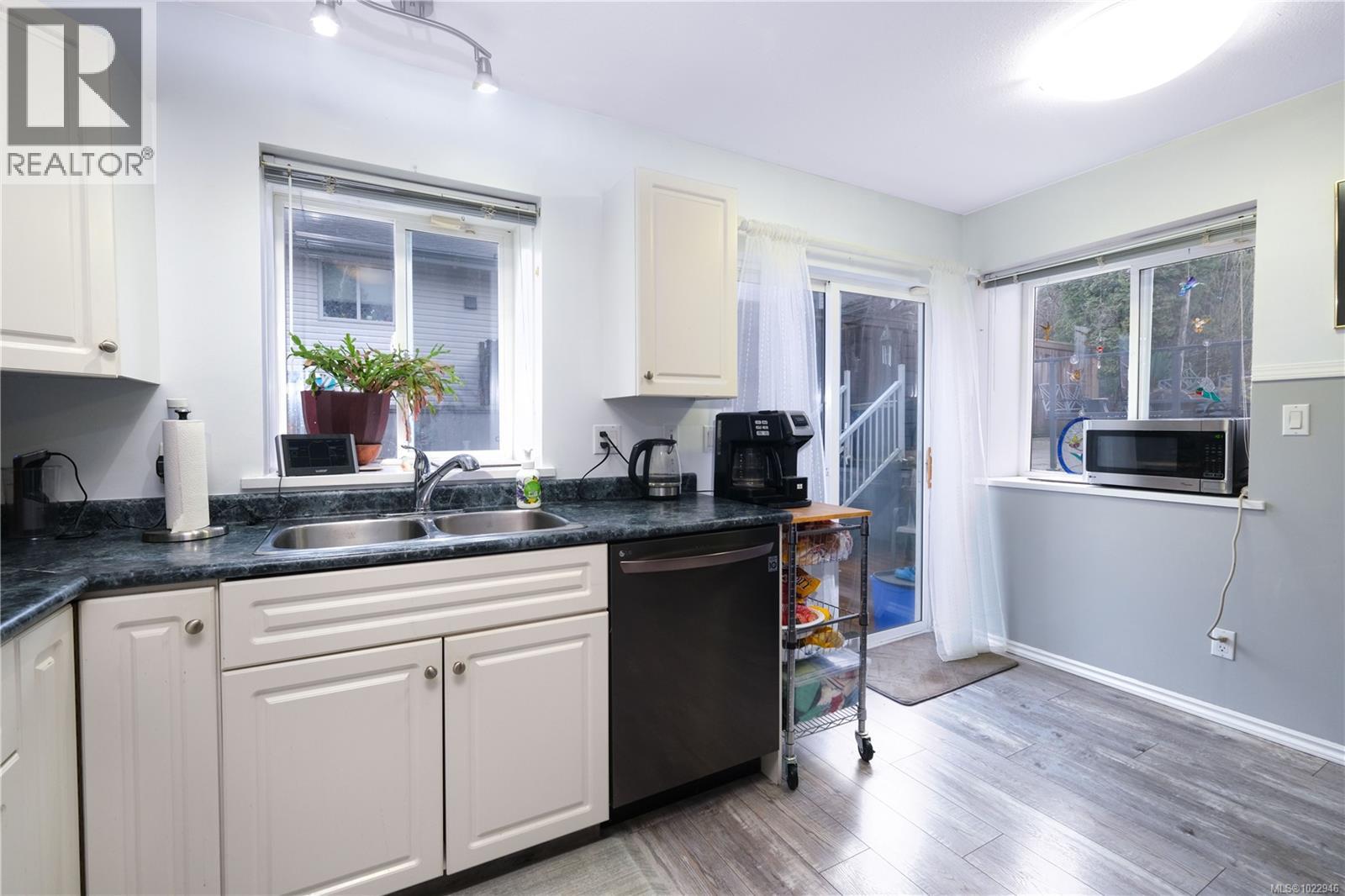 Welcome to this beautifully updated 2,100+ sqft family home, ideally located in central Campbell River close to schools, shopping, and restaurants. Designed with family living in mind, this home offers 4 bedrooms and 3 bathrooms spread across two levels, providing plenty of space and privacy for everyone. The double attached garage and spacious driveway offer ample parking, with additional street parking available. Comfort is ensured year round with a natural gas forced-air furnace and heat pump, providing efficient heating and air conditioning. Inside the kitchen features stainless steel appliances and newer flooring, while new carpet flows throughout the living areas. The home has been well maintained, with a brand-new roof replaced in 2024 for added peace of mind. Step outside to a large, sunny backyard with excellent potential for gardens and vegetable beds. Multiple decks and patios surround the home, offering versatile spaces for relaxing, entertaining, or enjoying summer bbqs. This move-in ready home checks all the boxes - book your showing today and experience everything Campbell River has to offer. (id:37104)