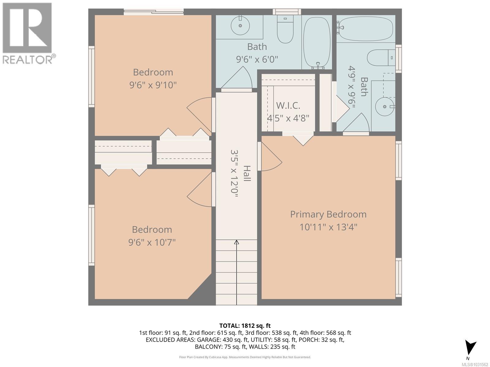 | Second Level | Bedroom | 9'6 x 10'7 | ||