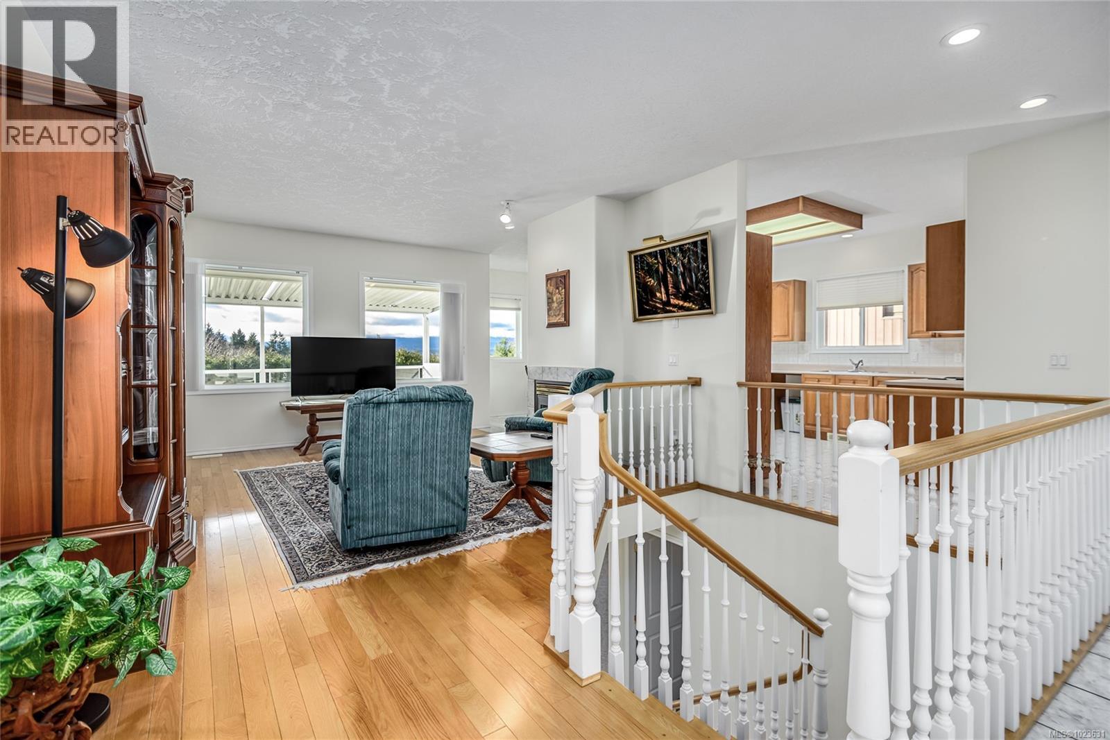 Amazing 5 bdrm/2.5 bath, mountain and glacier VIEW home in desirable Courtenay East location! Very well maintained one owner home, this rancher with full walk-out basement offers 3189 sf, ready to welcome a new family. Main floor features sizeable kitchen with ample cabinetry and tile floors open to dining area. Enjoy relaxing & entertaining on the fantastic covered deck. Spacious living room with wood floors, gas fireplace and fabulous views. Impressive primary bdrm with double closets, 5 pce ensuite and deck access. Downstairs offers huge recreation room with sliding doors to lower patio and landscaped yard, 3 large bedrooms and open den/office space. There’s a double garage, heat pump, hot water on demand, newer roof, built-in vac system and in-ground sprinklers. Zoning allows for a secondary suite. Excellent neighbourhood close to schools, shopping, college and hospital. Book your showing today! (id:37104)