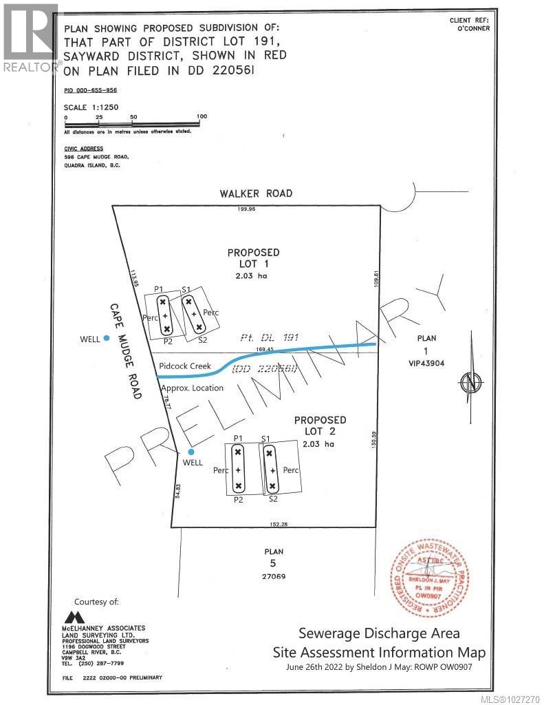 Sunny, flat 5 acres ready for your Quadra Island dreams! Corner lot with road frontage on Cape Mudge Rd and Walker Road a no-thru road. Surrounded by large acreages for privacy. Replanted with 1,500 evergreens, including: cedar, fir, two 6-foot sequoias, and two large redwood seedlings. Enjoy a seasonal creek winding along the southern property boundary. The east and south sections feature towering evergreens, while the majority of the property is natural vegetation. Southern exposure and full sun for all your gardening plans. The level landscape makes it easy to develop and use the entire 5 acres. Located within walking distance to the ferry, Quathiaski Cove shopping, the Building Supply and elementary school. Potential to subdivide into two 2.5-acre lots, with RU-2 zoning allowing for two homes and a shop. Development opportunity or the ideal place for your dream home. Please enter the property with your Realtor. (id:37104)