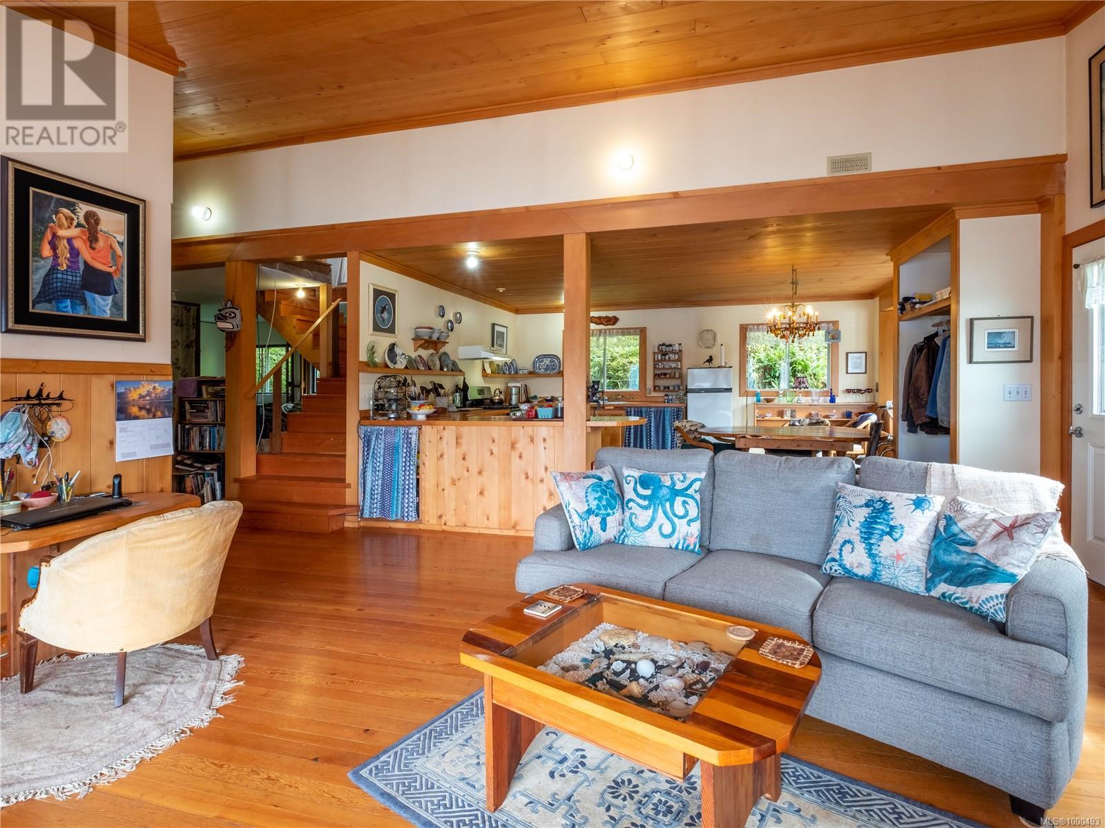 Dreaming of a life closer to nature; in a house by the sea where you can live, breathe and drink in the pristine beauty of BC’s coastal wilderness? This oceanside, owner-built, off-grid acreage home on Gilford Island, designed for comfortable year-round living overlooks Cramer Pass, a view of islands, Mt. Stevens, and passing whales. Explore the inlets and beaches of the Broughton Archipelago, feast on fresh caught crab or prawns; fish for salmon, cod or halibut for dinner. You’ll often spot an orca pod or humpback breaching. After a trip in your boat to Port McNeill for groceries, you’ll moor at the roomy dock, then walk up the sturdy aluminum ramp to shore. Locally milled lumber and thoughtful design are evident throughout the two and a half story home. Three ground floor entrances open into painting and pottery studios, and stairs to the main floor. An open concept kitchen/dining/living room, recreation room with pool table, and primary bedroom, each access the spacious deck above the foreshore and dock. An arched window by the tub in the bathroom allows you to stargaze while bathing and upstairs there are two more bedrooms and a second bathroom. Fully integrated new 18KW generator, solar panels and battery bank provide year-round electricity. This home has wood and propane hot-water baseboard heating, and hot water on demand. The main source of water is gravity fed from a nearby creek on the property. The gardens support a mix of specimen and indigenous trees, shrubs and flowers and lily pond, home to indigenous red-legged frogs. Garden beds are dedicated to flowers, berry bushes and vegetables to grow the fresh produce to accompany your seafood feasts. Additional structures outside the house are two pottery kilns, generator and woodshed. Don’t hesitate to reach out for more information about this golden opportunity and plan a visit to experience this turnkey opportunity firsthand. (id:37104)